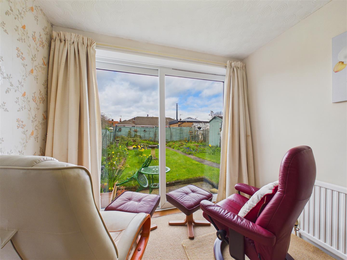 With sliding doors opening onto the rear garden.