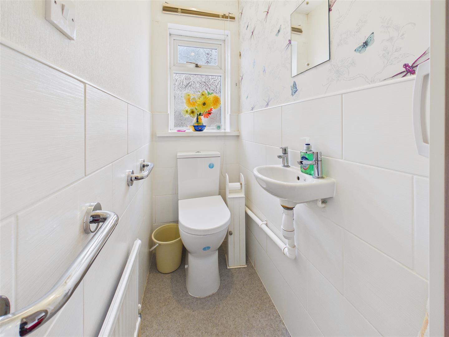 Wash-hand basin and low-flush W.C. beneath window to the side of the property.