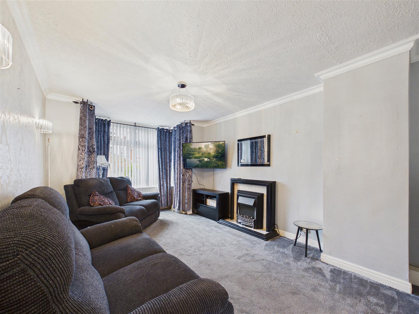 With feature fire surround housing an electric fire. Bay window to the front elevation. Doors lead through to the dining/sitting area.