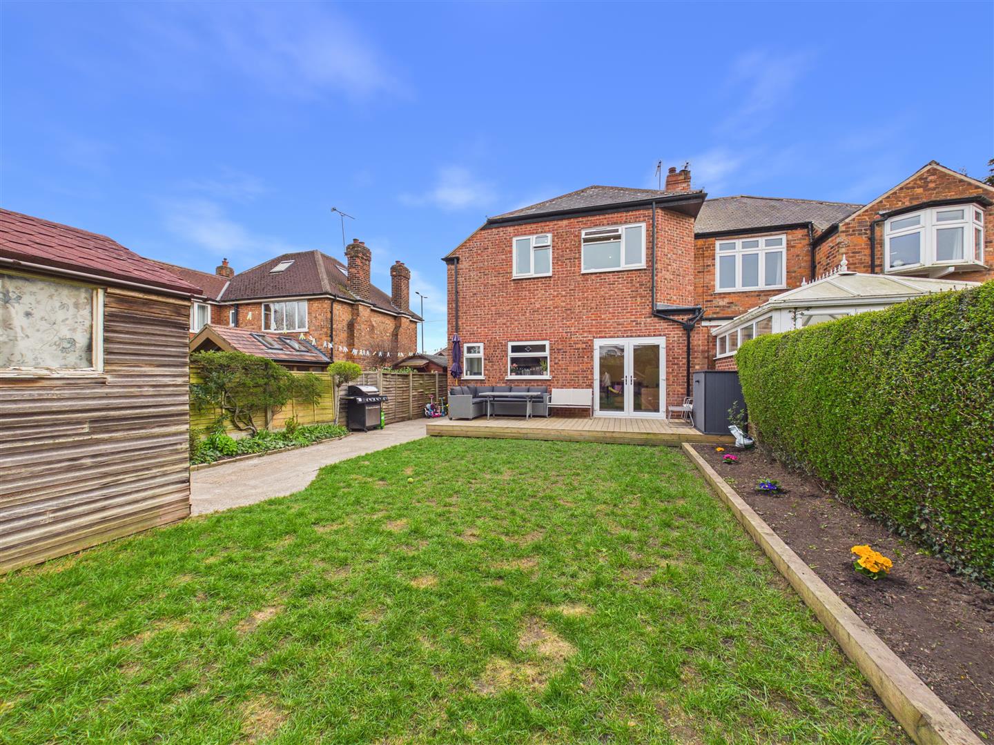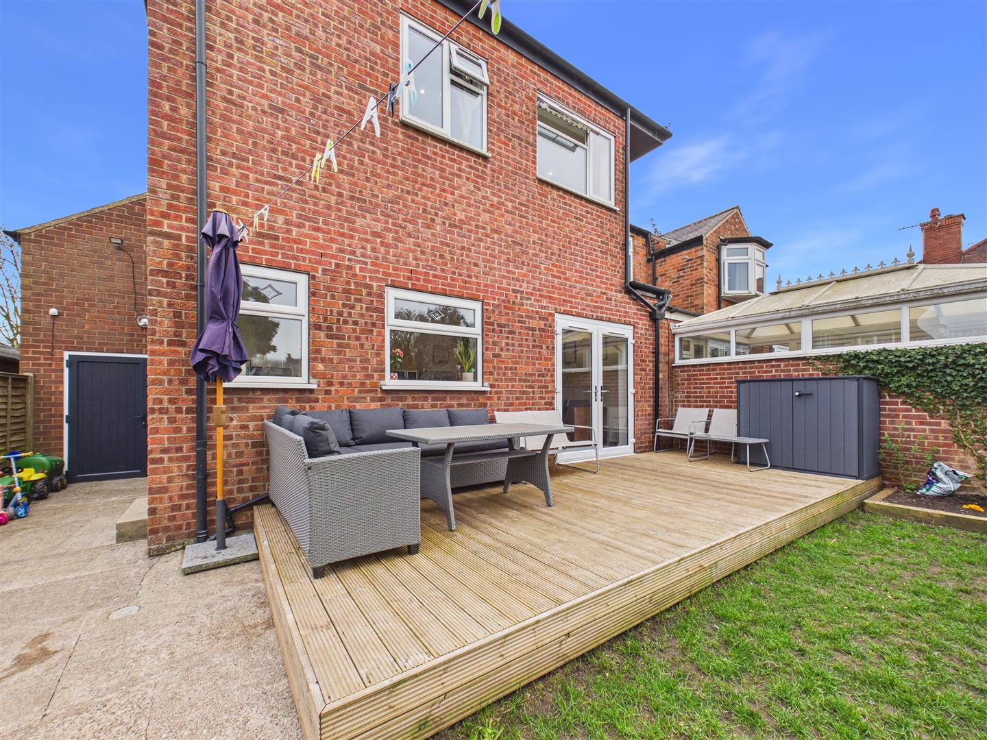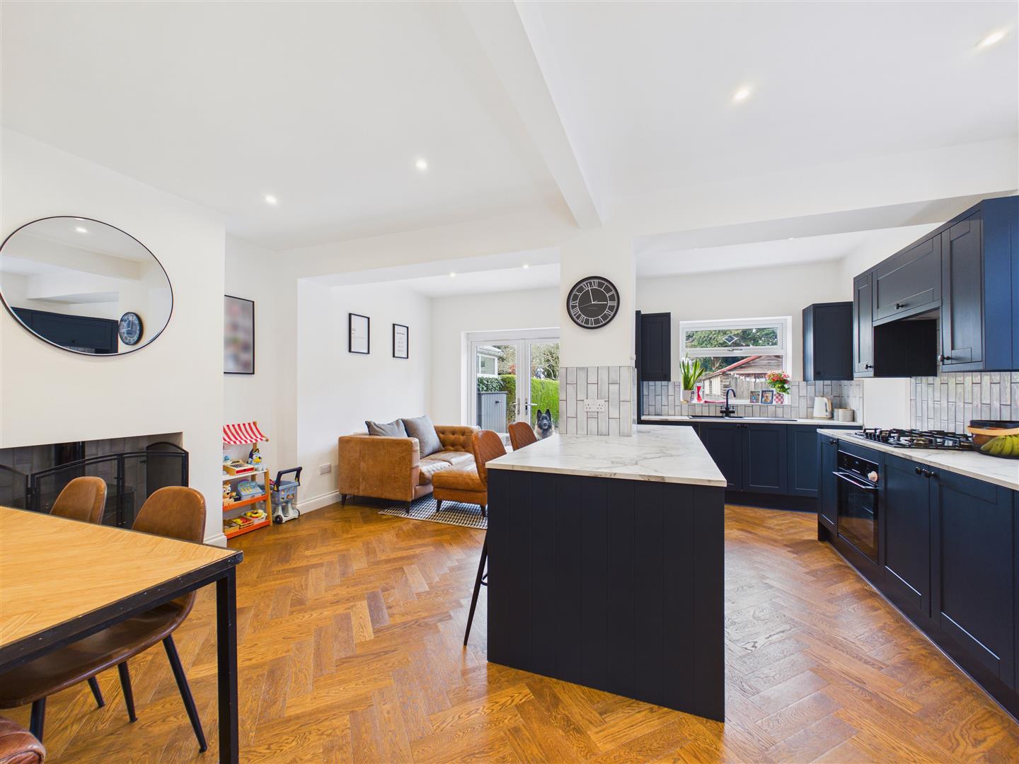 This bay-fronted semi-detached house has been extended and recently modernised by the current owners to provide a well-presented family home. The ground floor accommodation comprises an entrance hall, a lounge, and a large open-plan living kitchen featuring a central island with integrated appliances and French doors opening onto the rear decking. A rear lobby incorporates a utility area and gives access to the cloakroom/W.C.