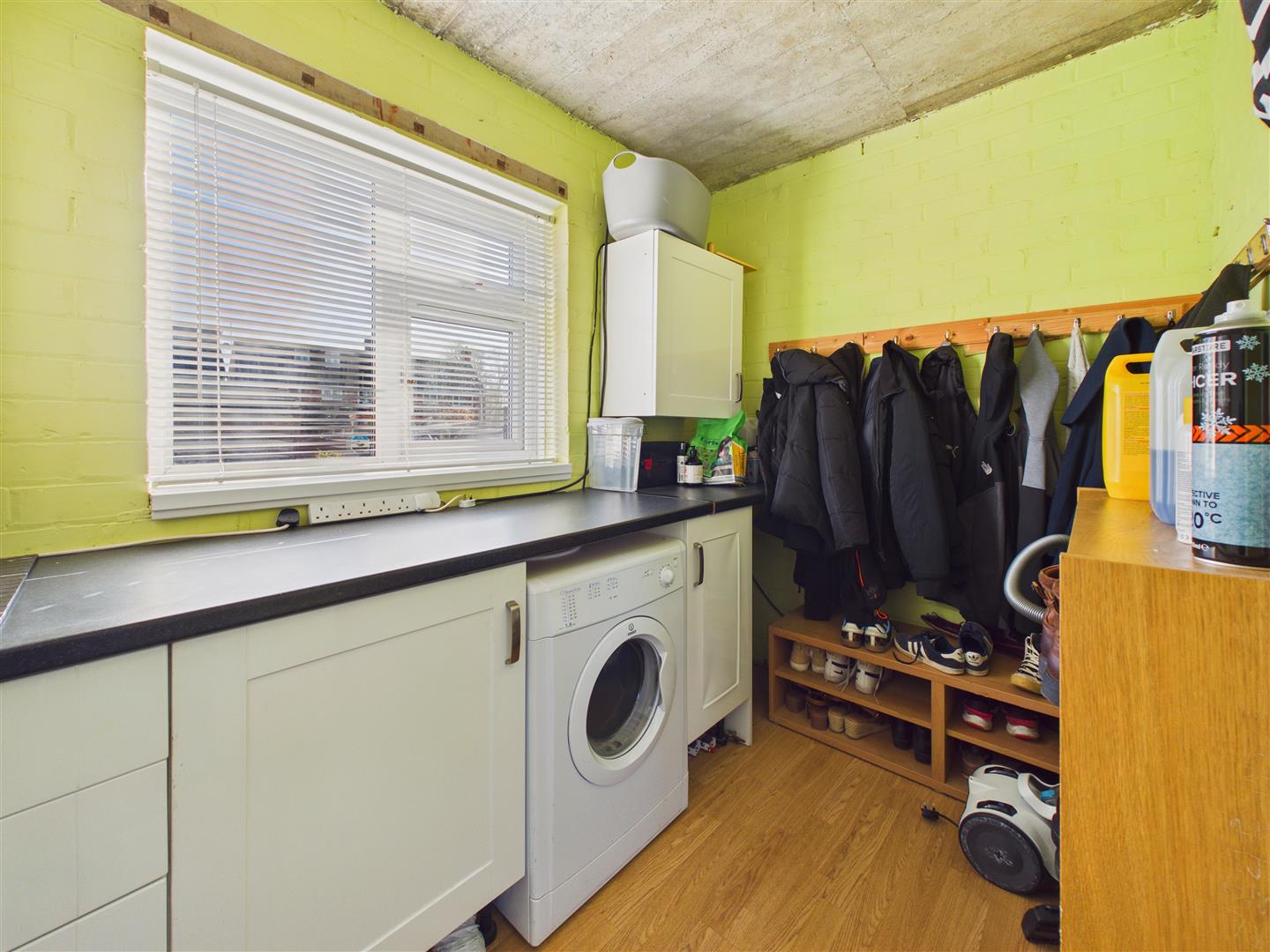 Door and window to the side of the property, large storage cupboard and access to the W.C. and utility.