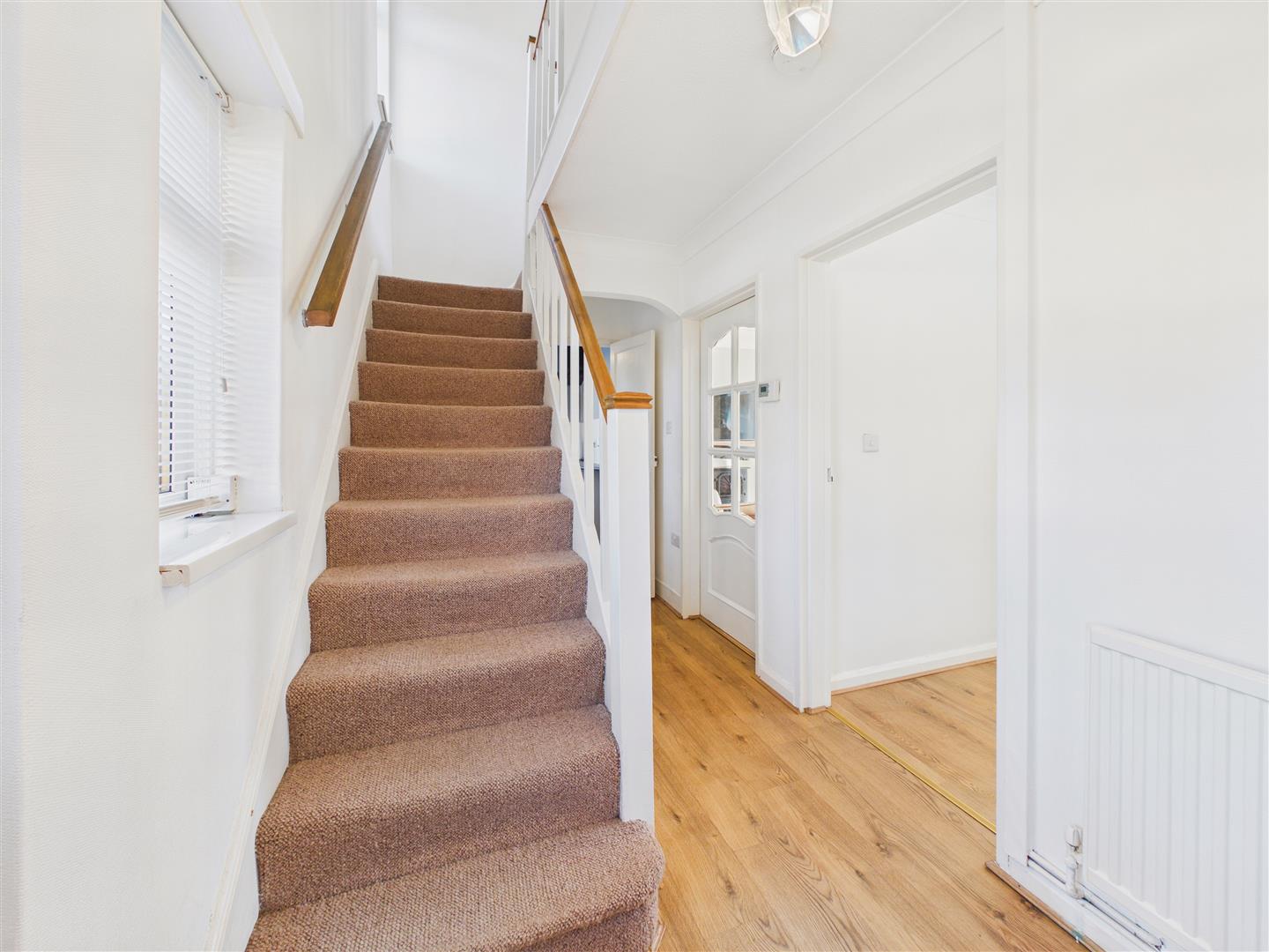 With window to front, stairs to first floor and understairs storage cupboard access.