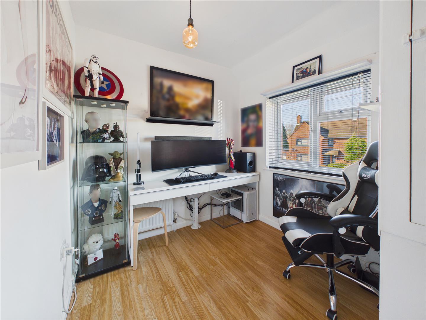 Storage cupboard to corner and window to the front elevation.