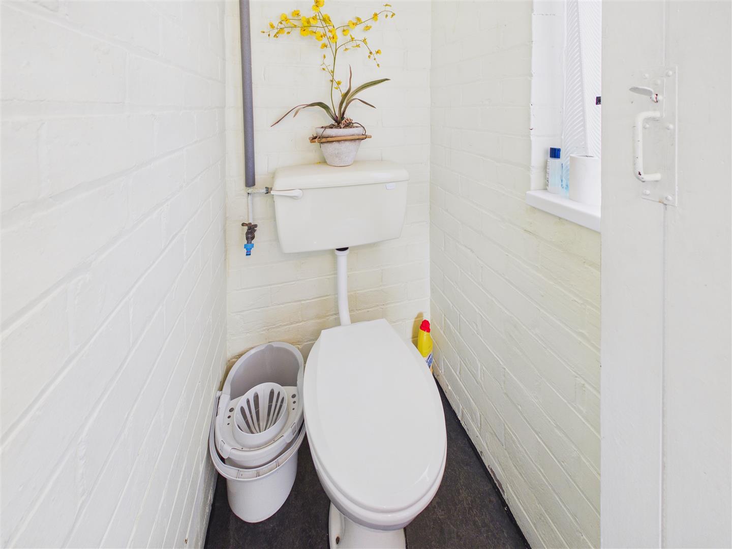 Comprising low-flush W.C. and window to the side.