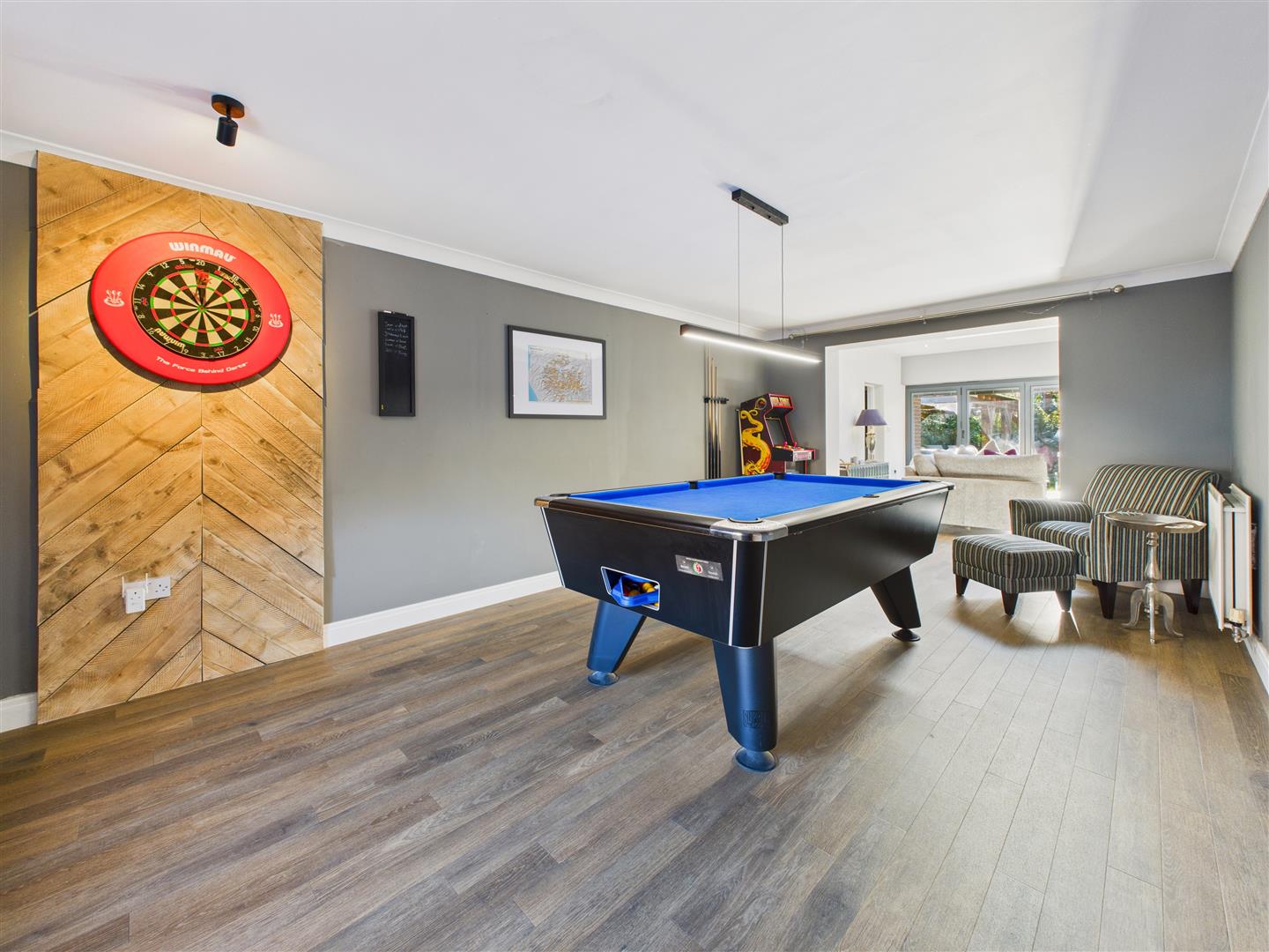 Currently used as a games room, with a window to front and opening to the extended garden room.