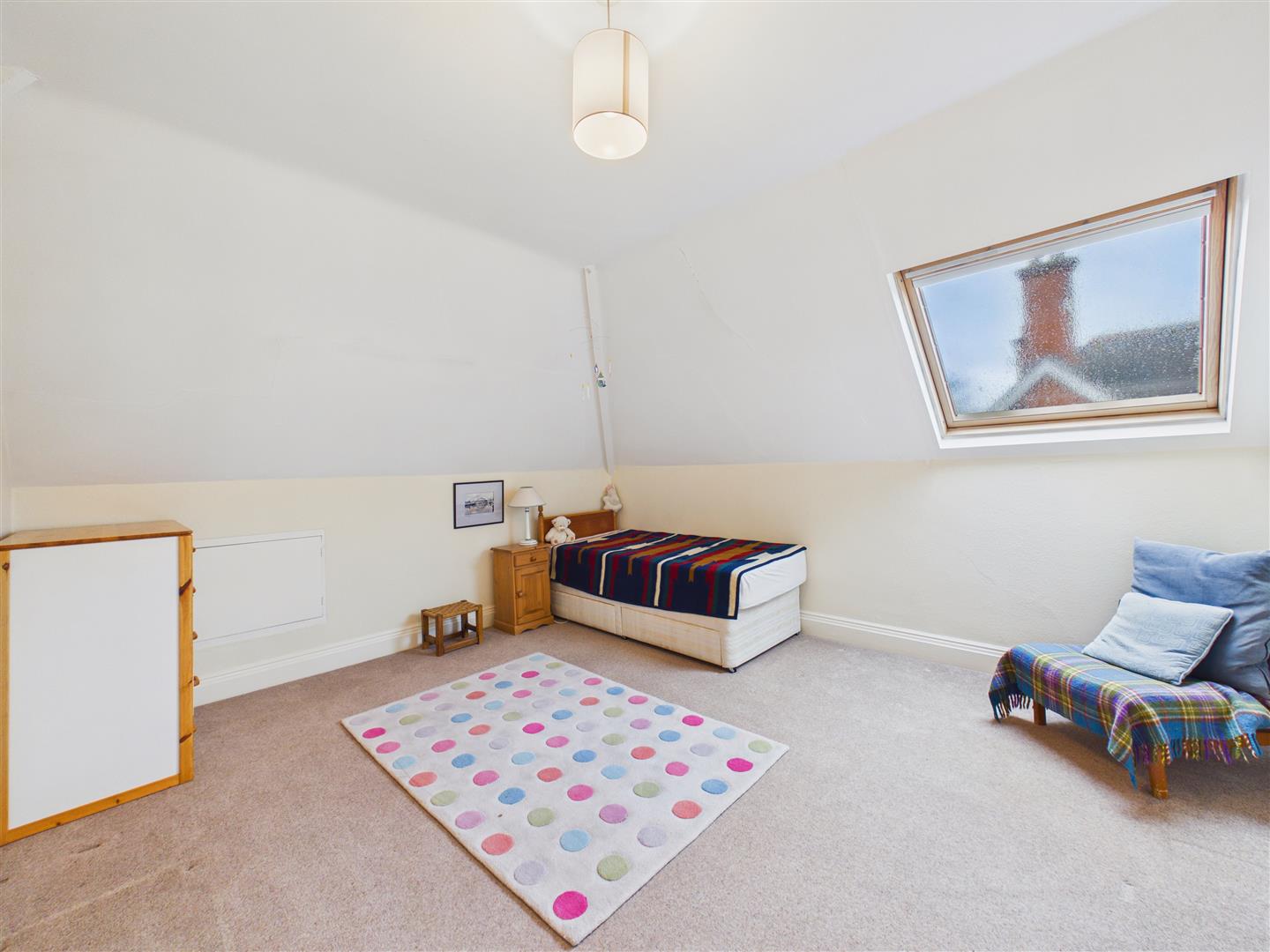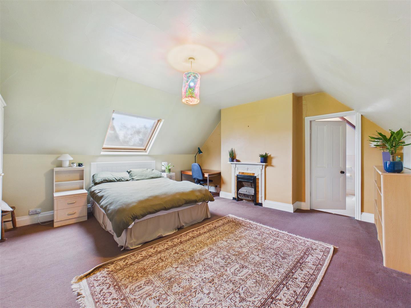 On the first floor are three bedrooms, including a principal en-suite and family bathroom, while the top floor offers two further double bedrooms (one en-suite) and ample eaves storage.