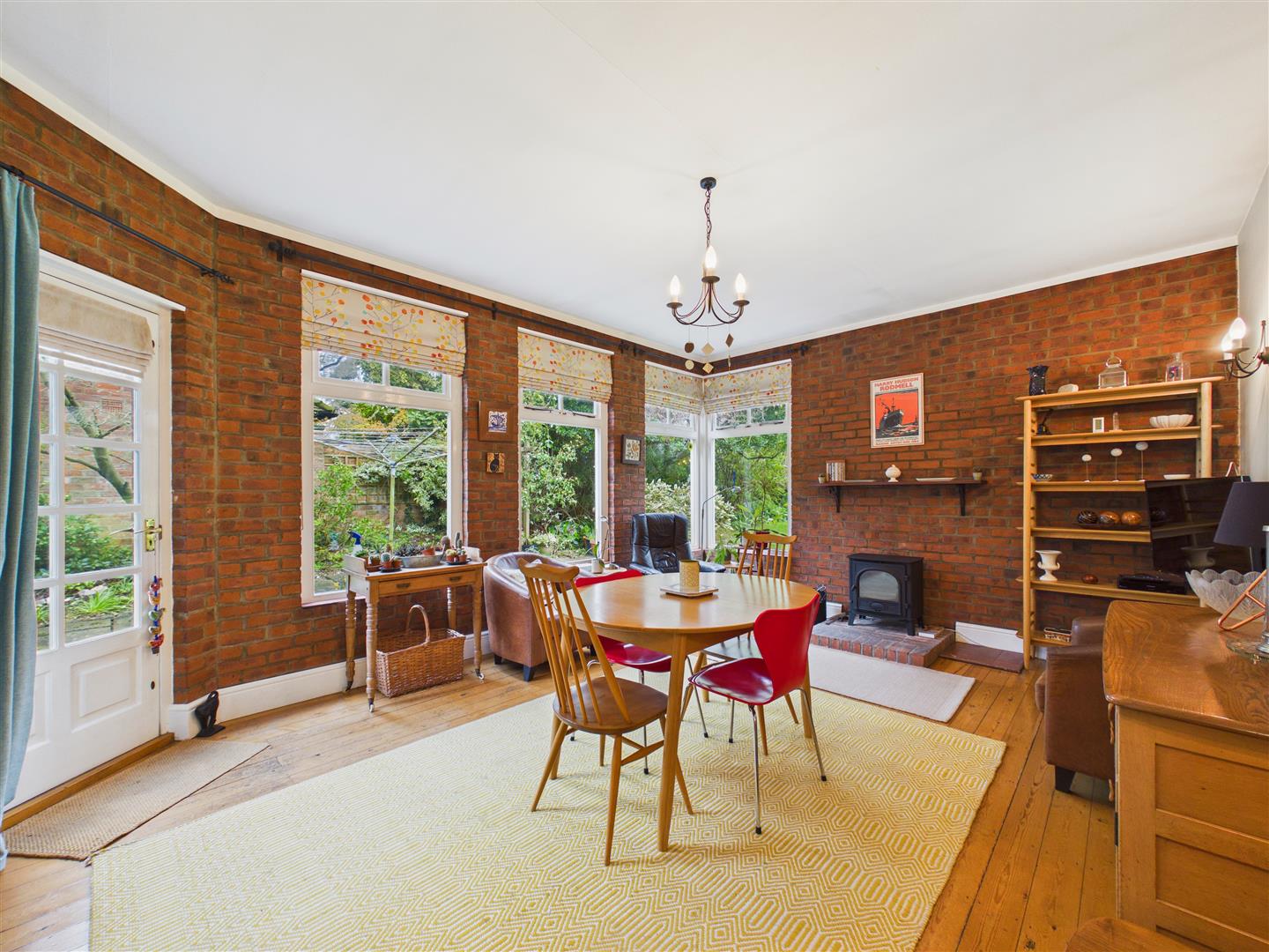 While the property is ready to be lived in, it offers an exciting opportunity for sympathetic modernisation to further enhance its substantial accommodation. The ground floor features a large sitting room with an open fire, a dining room with a bay window and built-in seat, a kitchen, utility, and a garden room with a log burner.
