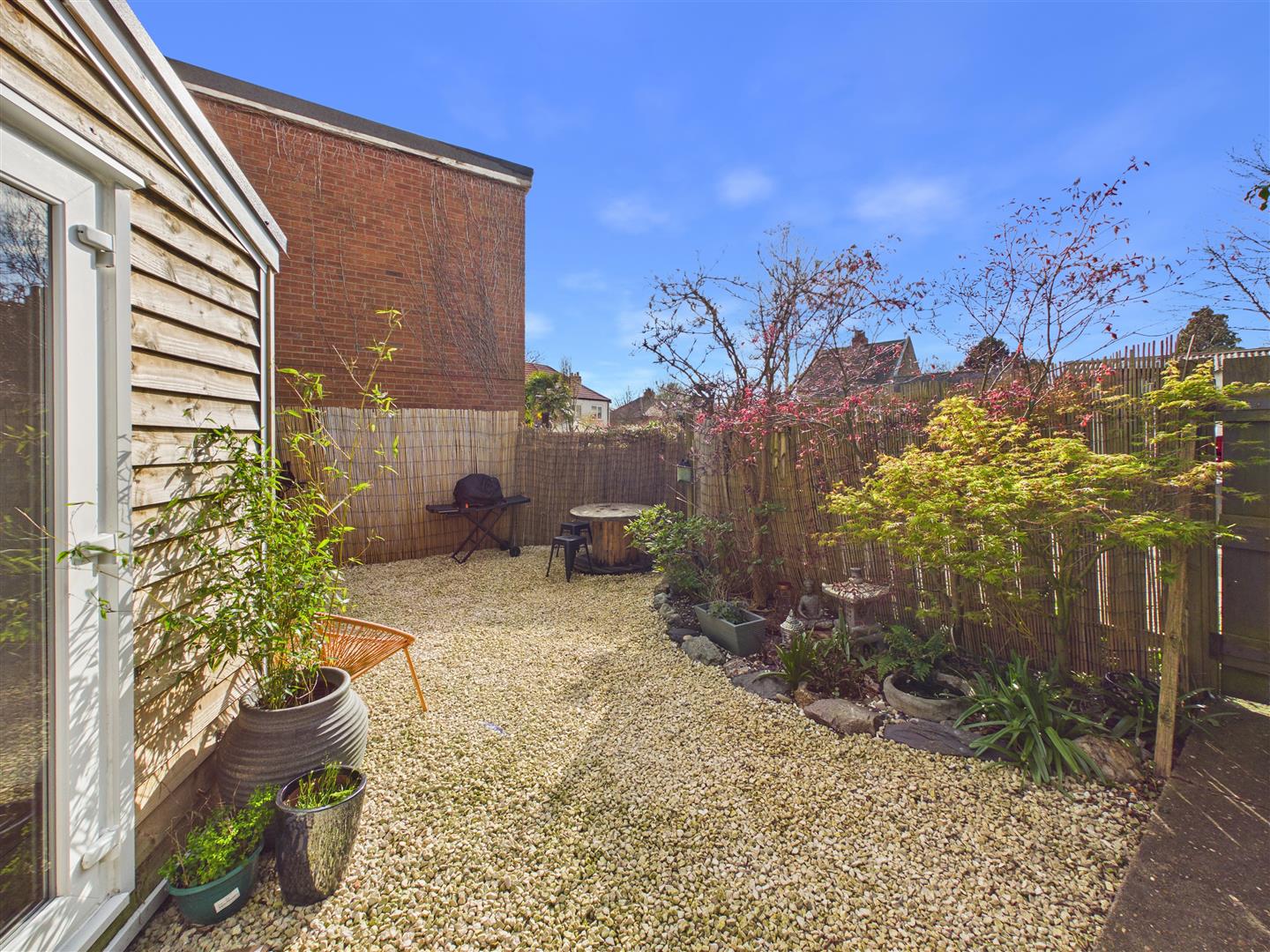 To the front, the property features a neat, gravelled garden area. The rear garden is designed for ease of maintenance, enjoying a westerly aspect that catches the afternoon and evening sun. The space is primarily gravelled with a paved patio area, enclosed by fenced boundaries. Parking is available to the rear accessed via a tenfoot from New Walk.