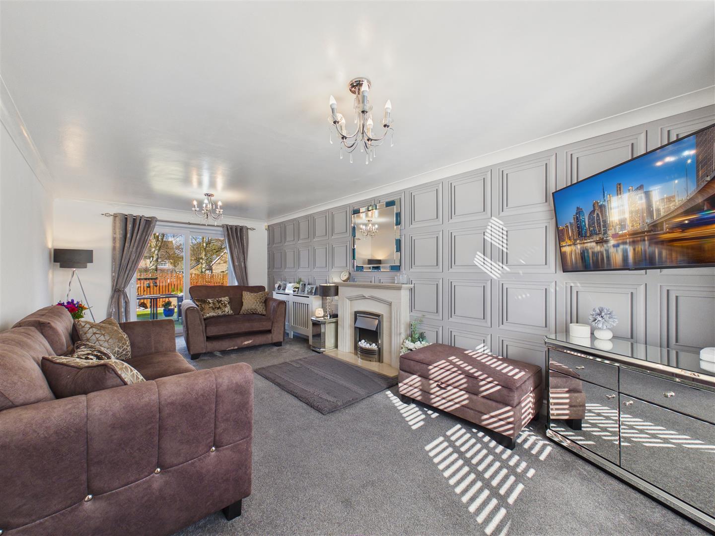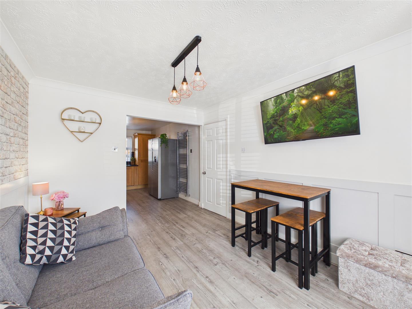 Enjoying a dual aspect with window to the front elevation and patio doors leading out to the rear garden. There is a feature fire surround housing an electric fire.