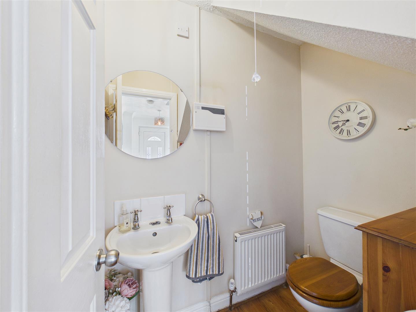 With loft access hatch and large storage cupboard.