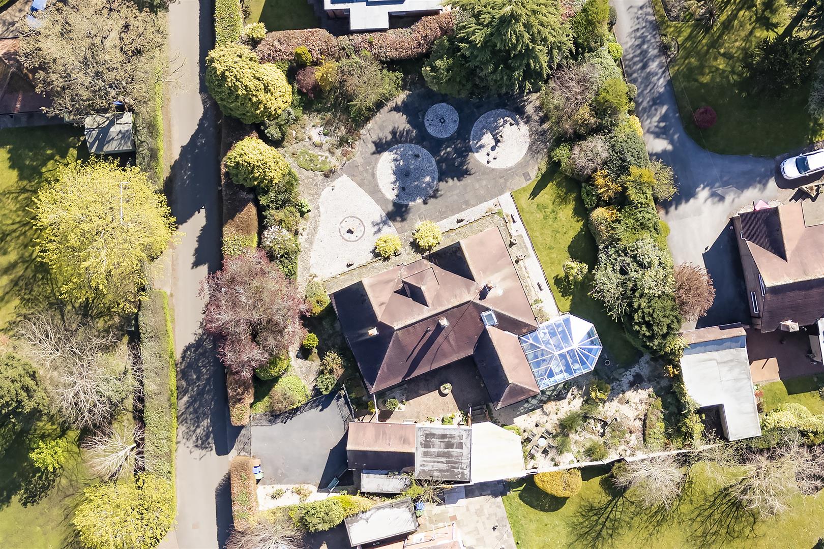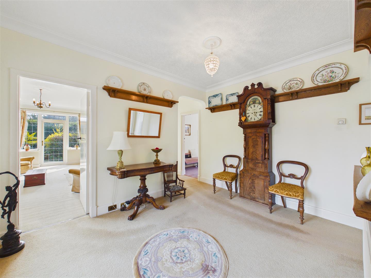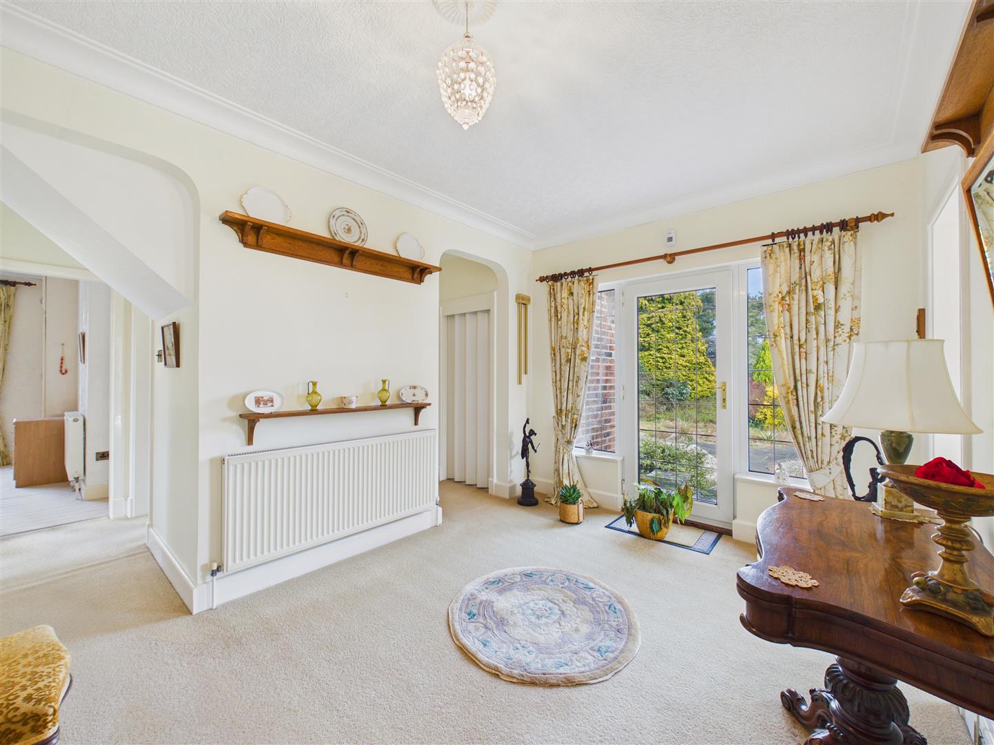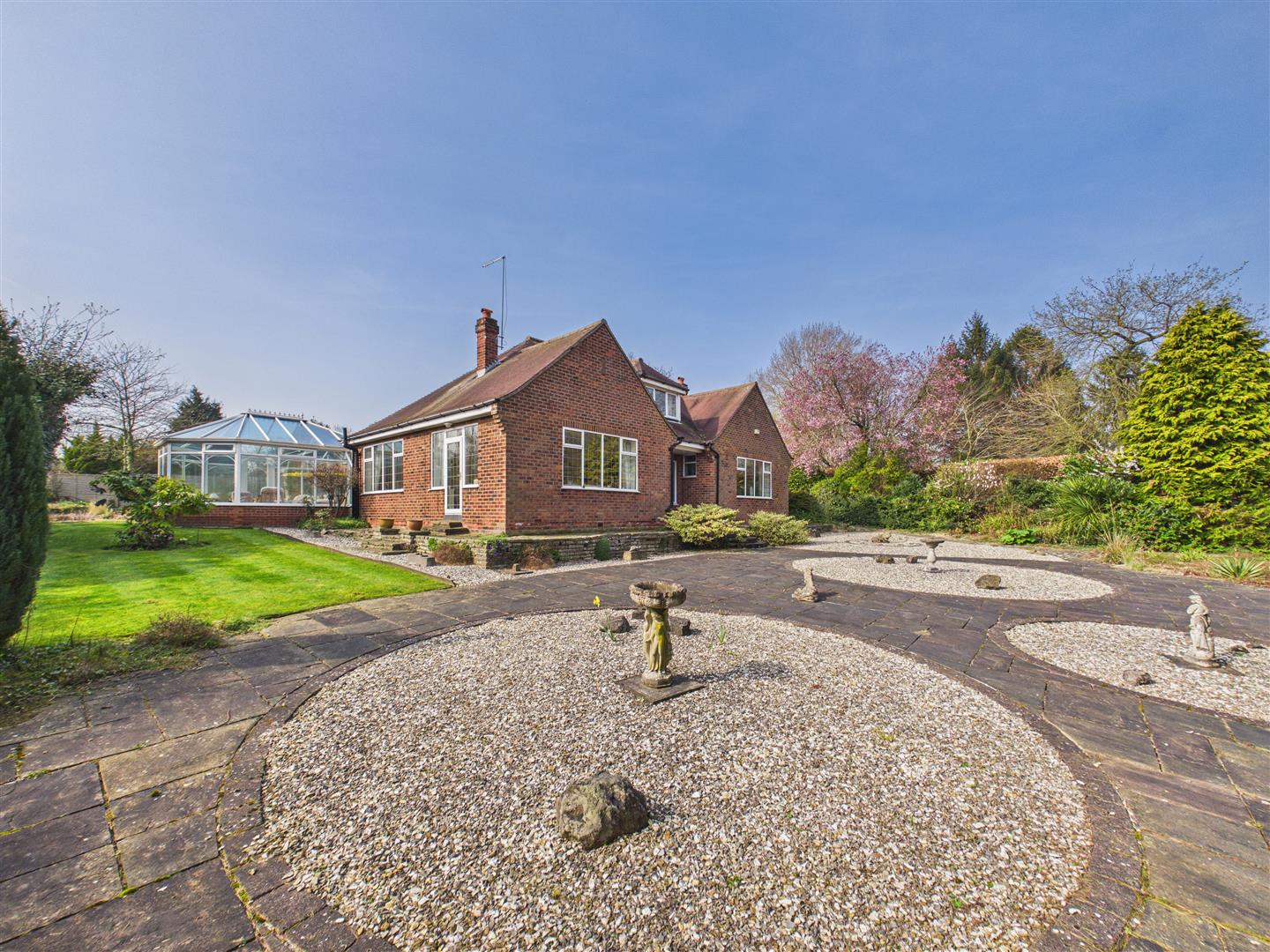 The property occupies an impressive plot of approximately one-third of an acre, with the bungalow positioned centrally to create a sense of space and privacy on all sides. This unique layout provides wraparound gardens that ensure a sunny aspect is available throughout the day.
