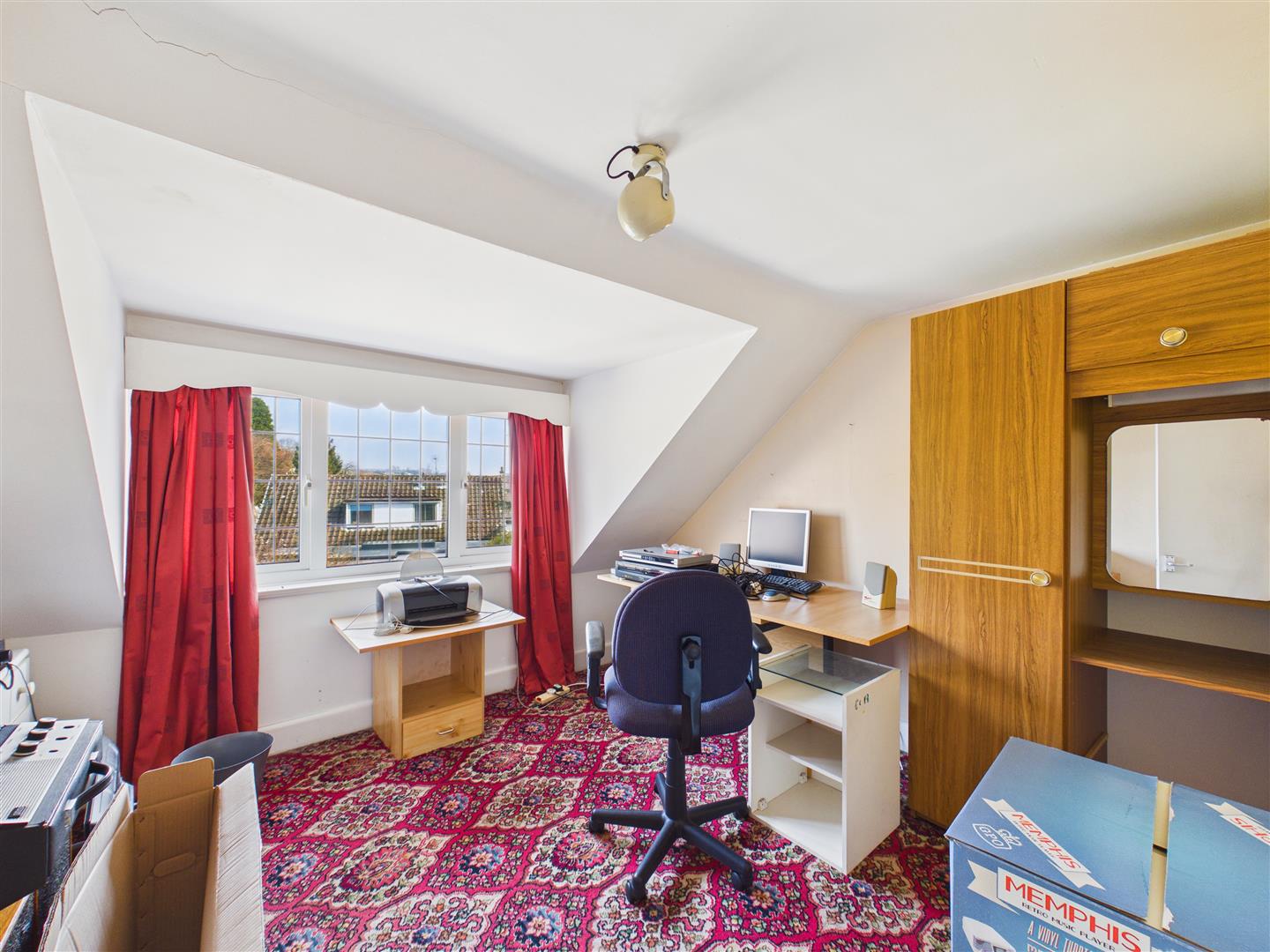 With built in wardrobe and decorative fireplace. Window to the front elevation.