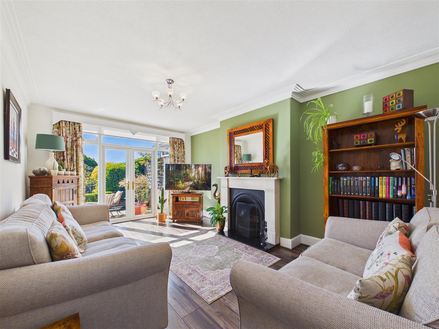 With feature fire surround housing a cast open fire. French doors lead out to the south facing patio and garden beyond.