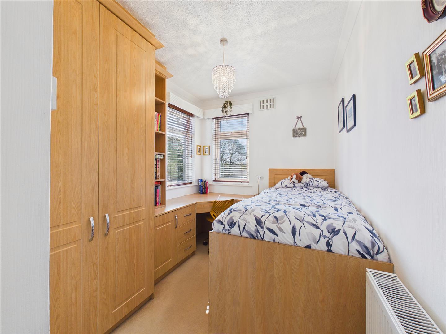 With fitted furniture including a cabin bed with storage under, wardrobes, desk and drawers. Windows to the side and rear elevations.