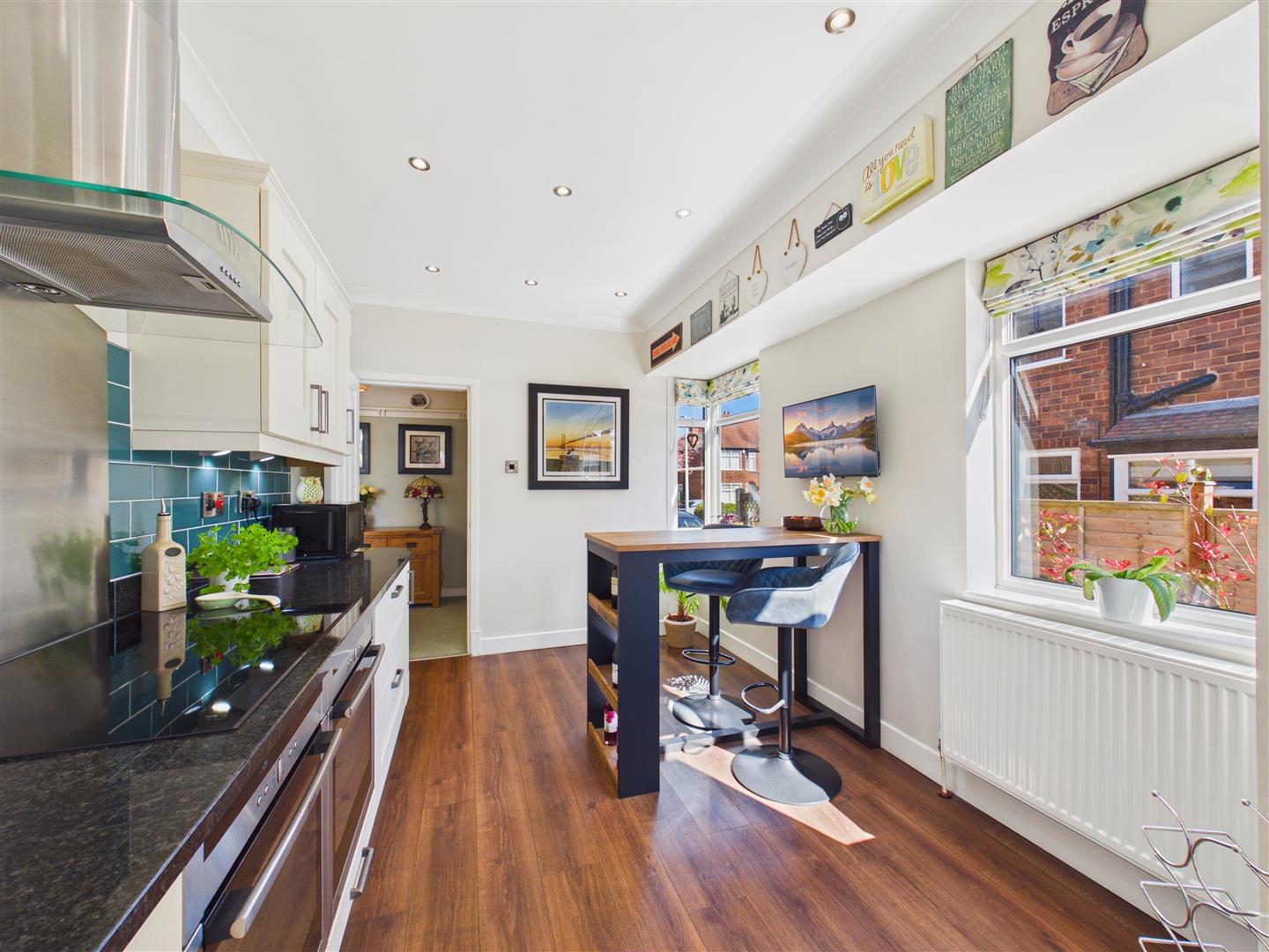 This superb, bay-fronted semi-detached home has been meticulously maintained and extended to provide an exceptional standard of living. A thoughtful loft conversion has created a versatile layout spanning three floors, now boasting four bedrooms, two shower rooms, and a dedicated home office or nursery. The ground floor offers an abundance of space, featuring a welcoming entrance hall, a generous sitting/dining room, a separate lounge, and a well-equipped breakfast kitchen alongside a guest cloakroom/W.C.