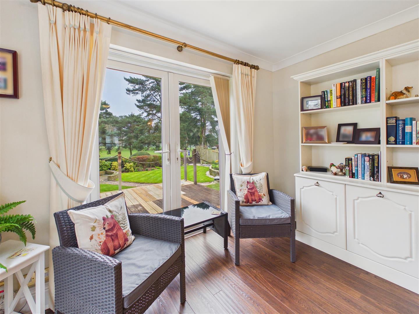 To the front, an extensive block set forecourt provides parking for several vehicles and access to the garage. The garage measures approximately 18'5" x 10'2" and has an automated up and over entry door. The gas fired central heating boiler is housed in the garage. The rear garden is an absolute delight providing many areas of interest. There is a raised decked balcony affording gorgeous views across the garden and golf course beyond. There are patio areas, shaped lawns, artificial grassed area and a summerhouse is positioned to look back at the house to enjoy and bask in the sun all day.