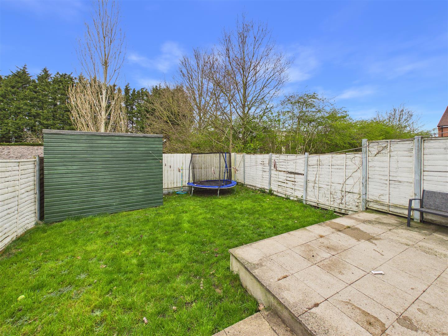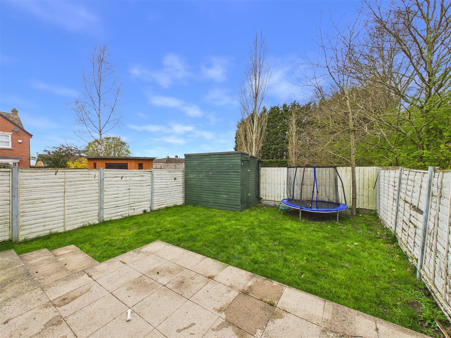 To the front of the property is a small, manageable garden area. A side driveway provides off-street parking for two vehicles. The rear garden is predominantly laid to lawn, featuring a raised patio area and a fenced boundary for privacy. A garden shed provides additional storage.