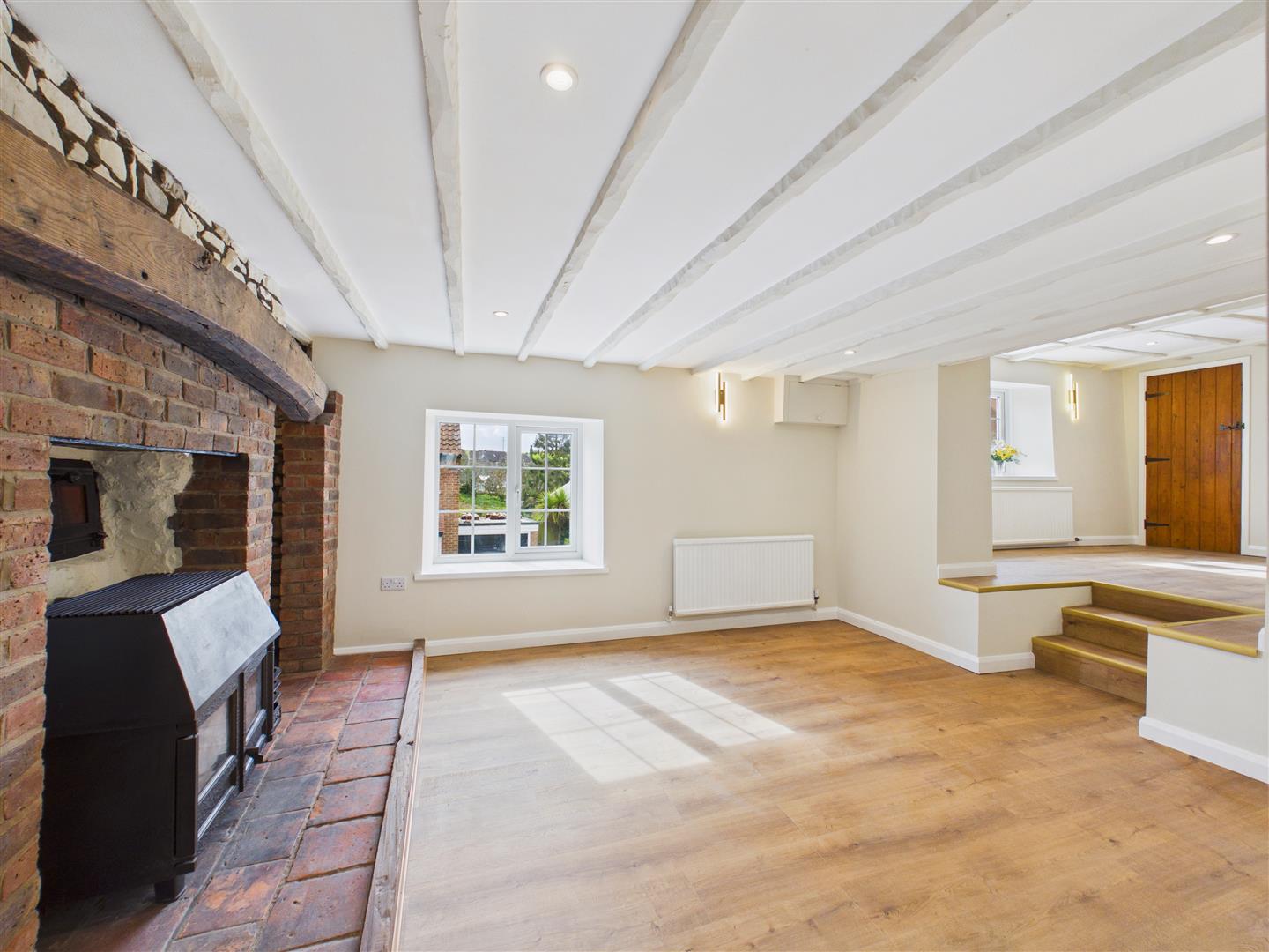 A split-level lounge anchored by an original log burner set within a meticulously restored inglenook fireplace comprising of origibnal chalk anf flint, complete with a solid wood "ships bow" mantle. Windows to the front elevation.