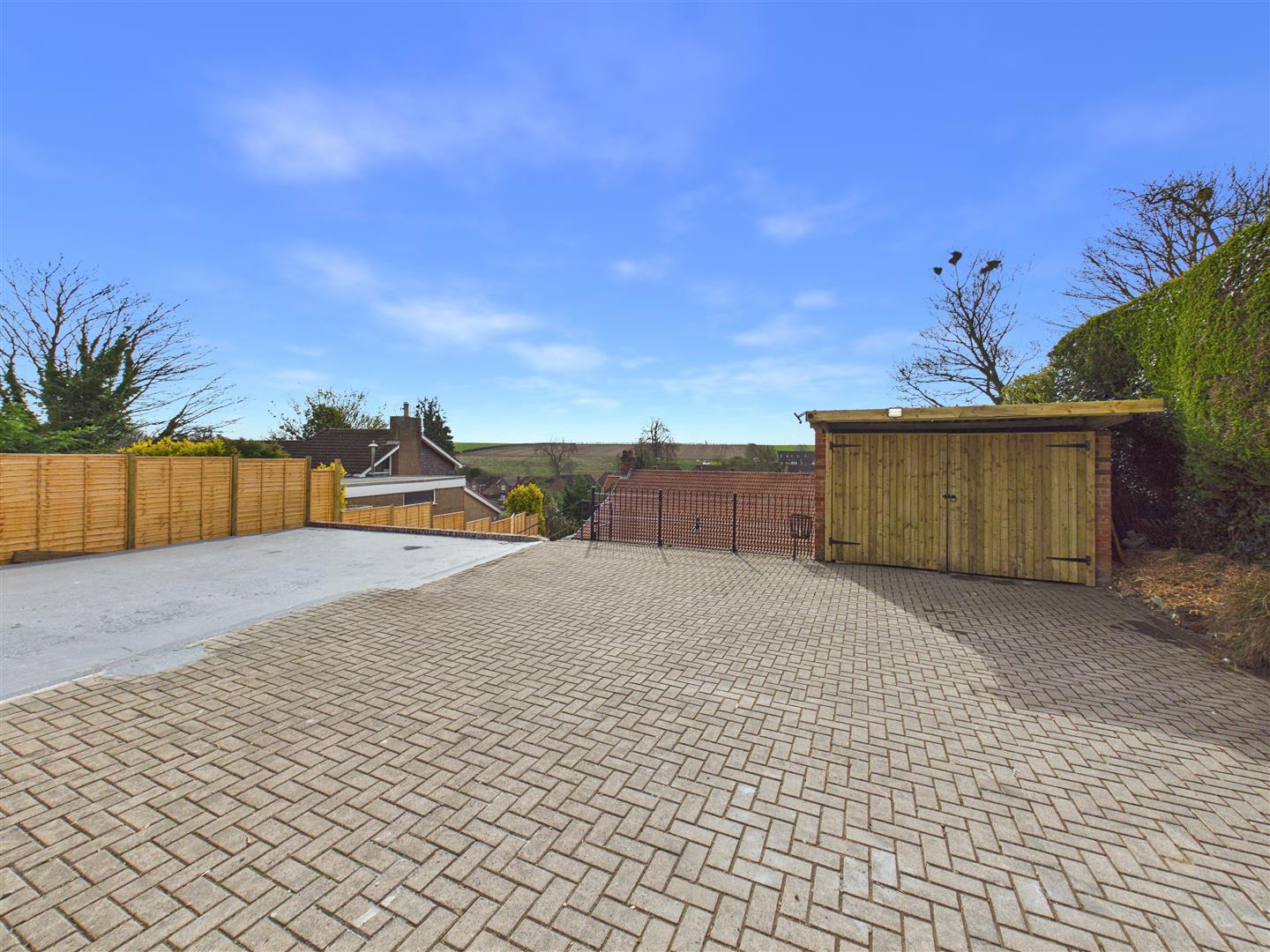 Practicality is well-catered for with two double power sockets at the rear of the house, and a further two within the timber carport which also features floodlighting. Tucked away in the garden is a unique "dog boudoir"—a heated, waterproof, and secure space with a breathable window. To the rear, there is an access reached from Potterdale Drive via Owl Hill Lane that is shared with the neighbouring property. Timber gates open onto an extensive block-paved and concrete parking forecourt, providing ample off-street parking alongside the timber carport.