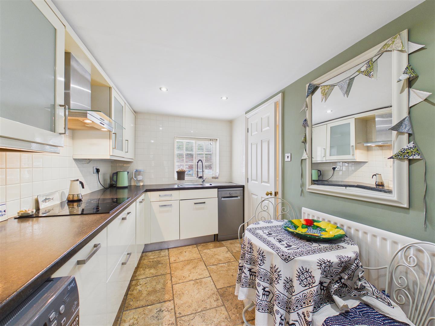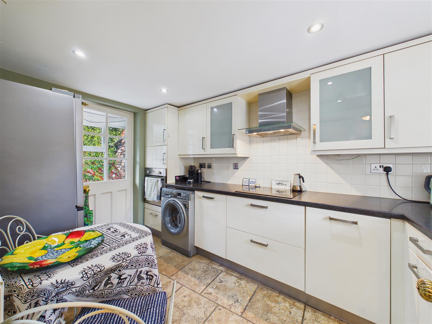 Having a range of modern base and wall units with contrasting worktops incorporating a sink and drainer with shower style mixer tap, oven, four ring hob with filter above. There is plumbing for a washing machine and dishwasher plus space for a fridge/freezer. A door leads through to the garden room.