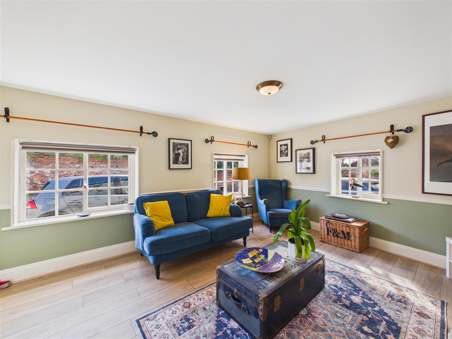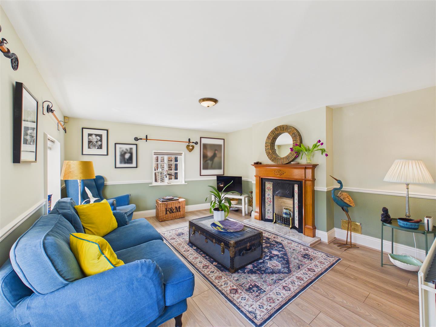 Spacious, light and airy living space with feature fireplace and windows to the front and side elevations.