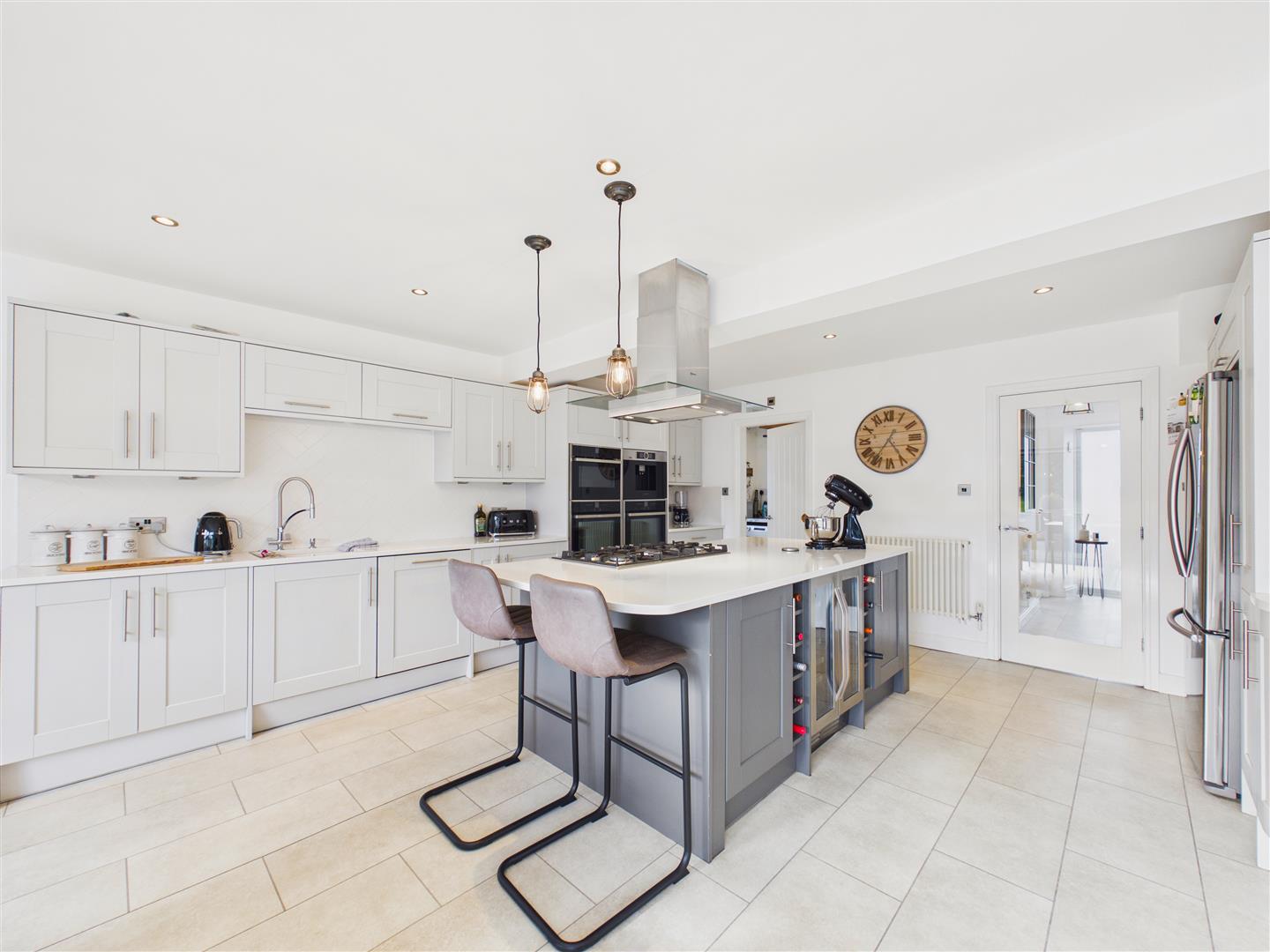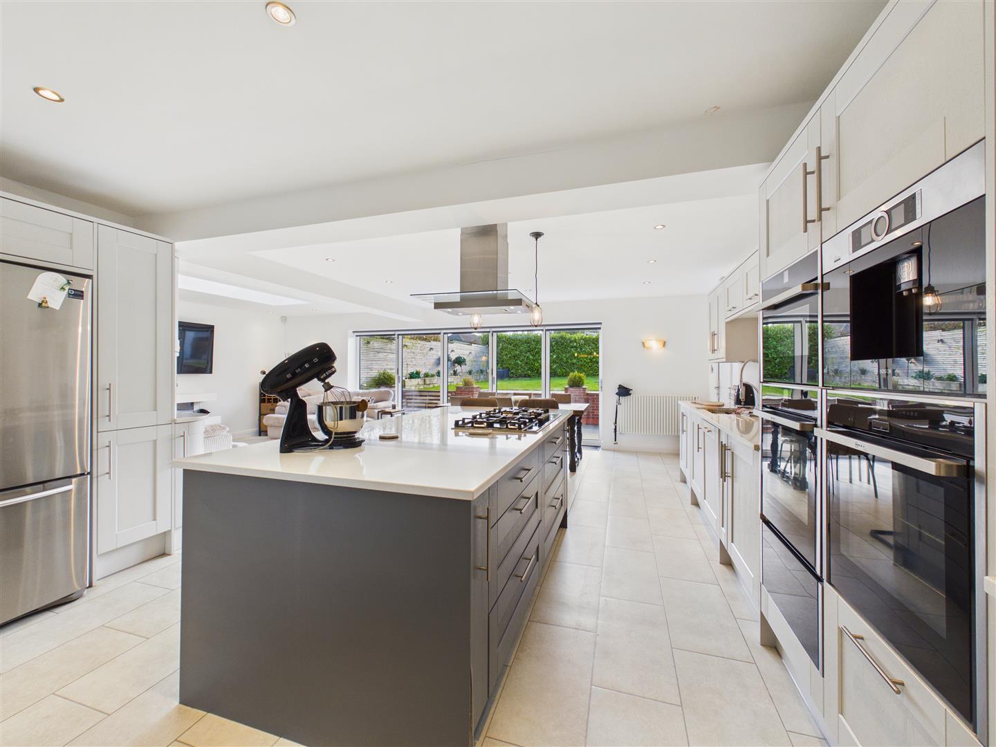 This stunning space is situated to the rear of the property with bi-folding doors opening out to the westerly facing rear garden. The kitchen is fitted with stylish base and wall units, quartz worktops and a large matching central island. There is a host of integrated appliances including two NEFF hide and slide ovens, microwave, five ring gas hob with extractor above, coffee machine, warming drawer, dishwasher and wine fridge. There is housing for an American style fridge/freezer and an inset sink unit with drainer.