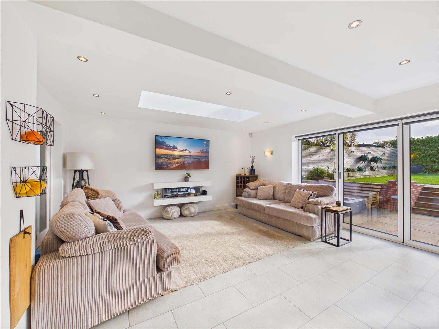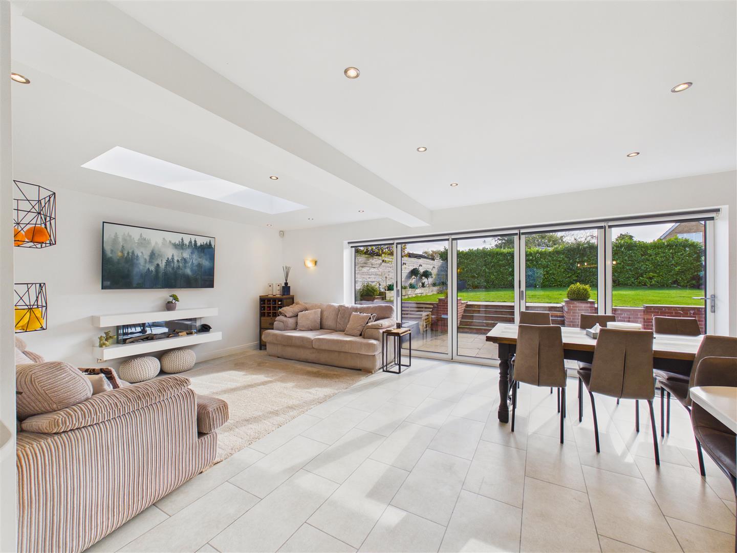 With feature fire surround housing a living flame gas fire. Window to the front elevation and bi-folding doors opening through the living kitchen.