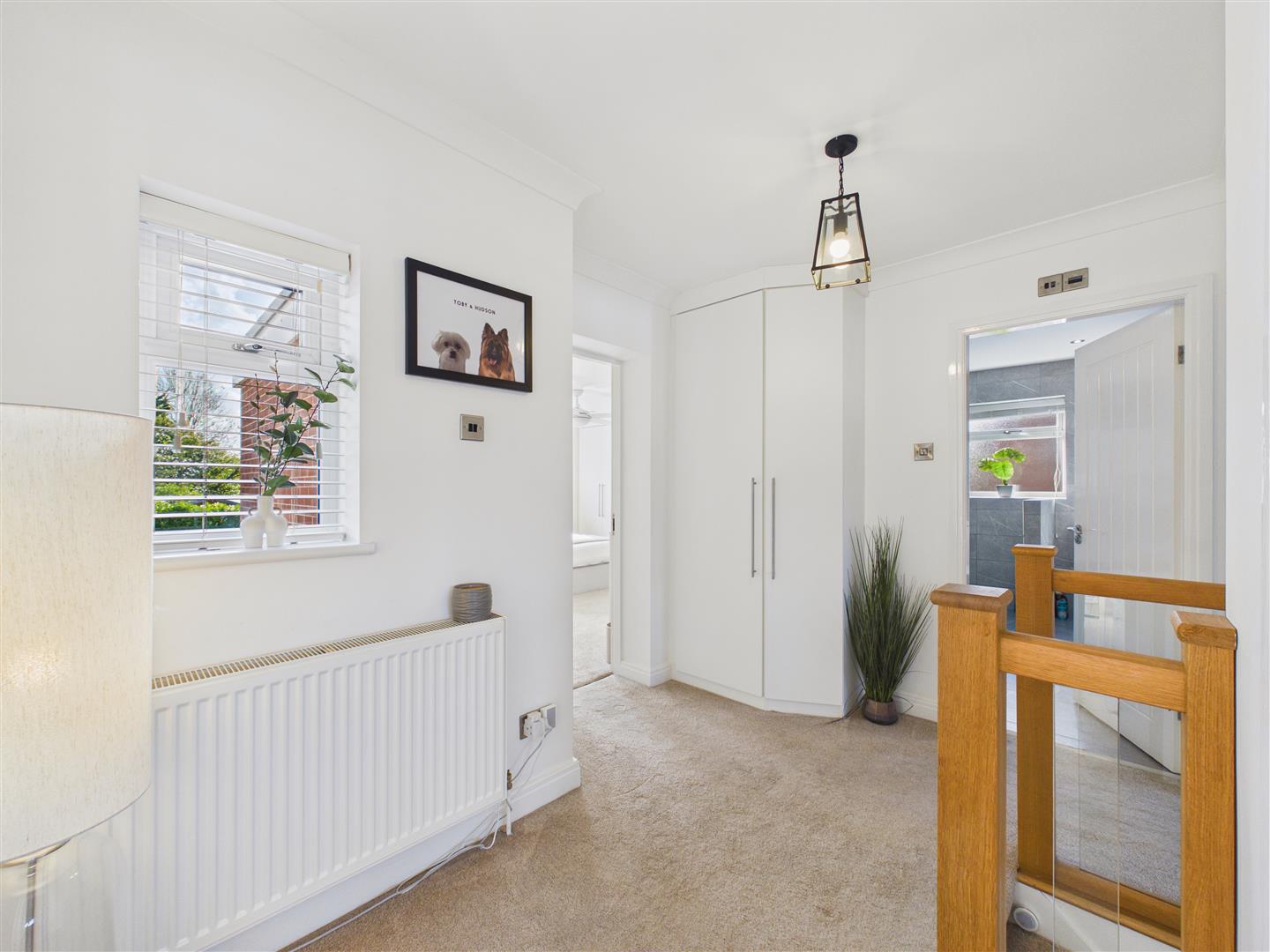 The sense of scale continues to the first floor, which hosts three generous double bedrooms. The principal bedroom is a masterclass in storage, boasting an extensive range of fitted wardrobes and drawers. Adjacent to the bedrooms is a versatile dressing room; currently an organized haven, its position as the former family bathroom makes it an ideal candidate for conversion into a second home office, a nursery, or a luxurious additional shower room. The main family bathroom is a sanctuary of its own, featuring a deep freestanding tub and a spacious walk-in shower.