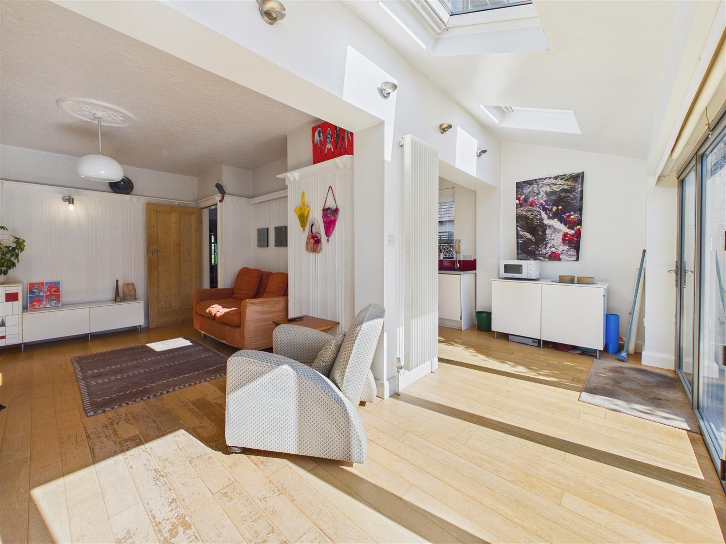The room has been subject to an attractive extension with bi-fold doors and three skylights, with the space at the rear of the property being open and leading round to the kitchen.
