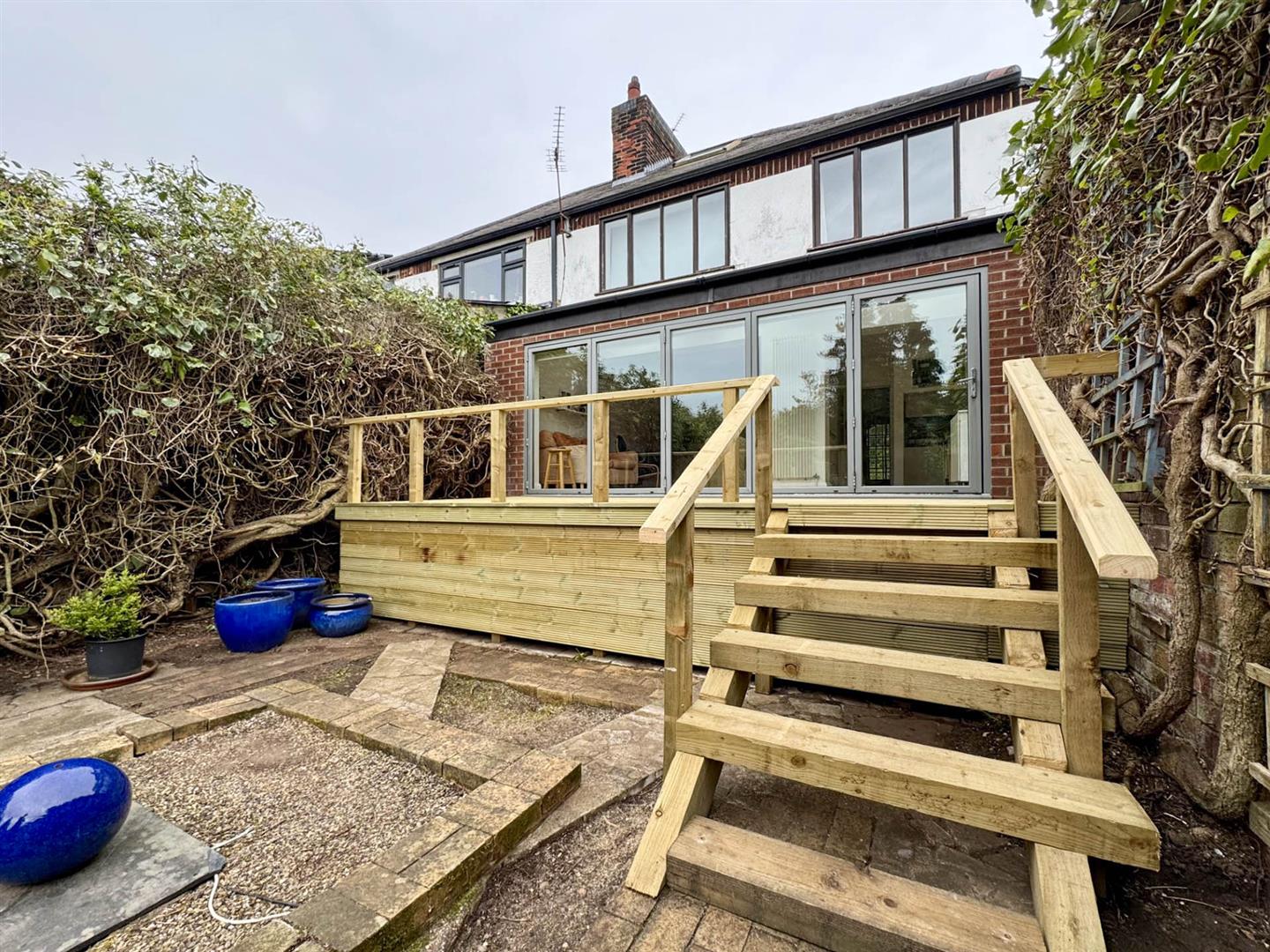 The property is set back behind a front driveway which extends to the side, providing ample off-street parking and leading to a detached garage. To the front, there is a pebbled and low planted garden area. The rear garden is a particular highlight, enjoying a southerly aspect and a panoramic backdrop of the Humber. The garden is primarily laid to lawn and includes a newly built raised decked area which, while providing a perfect vantage point for the river views, requires a scheme of maintenance or replacement. There is a wooded area on the northern side of Humberdale Drive of which a portion of belongs to the subject property (see attached map).