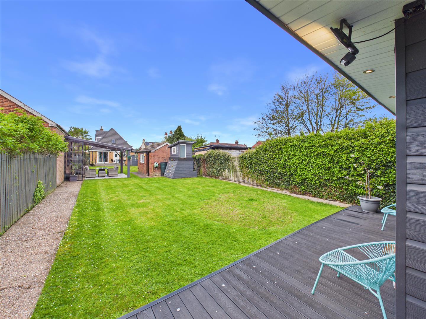 The rear garden is incredibly well-presented and boasts excellent proportions, comprising decking to the immediate rear, extensive lawn, additional patio with pergola to the middle and recently constructed summer house at the far end. There is a drive which leads to the integral garage as well as gravel with potential off-street parking for three vehicles.