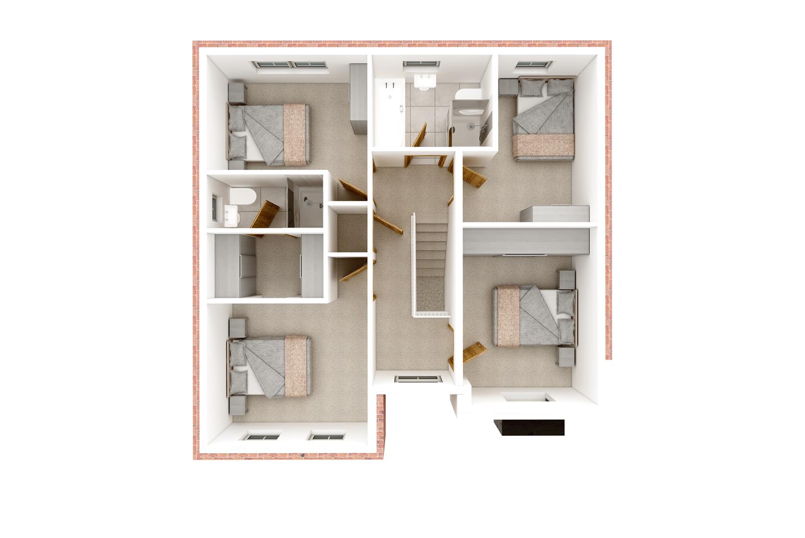 The Violet is a sumptuous, generously proportioned four bedroomed detached home with integral garage. A spacious hallway greets you as you enter and the focal point is the plush living room with its beautiful bay window filling the room with natural light. The state of the art island kitchen is set within an airy open plan day room which has bi folding doors spanning the full width of the room leading out to the large rear garden. A separate utility, W.C. and large storage cupboard complete the downstairs. Upstairs is pure opulence! The impressive main suite comprises a walk through dressing area and deluxe en-suite. Three further double bedrooms and large contemporary family bathroom complete the first floor.