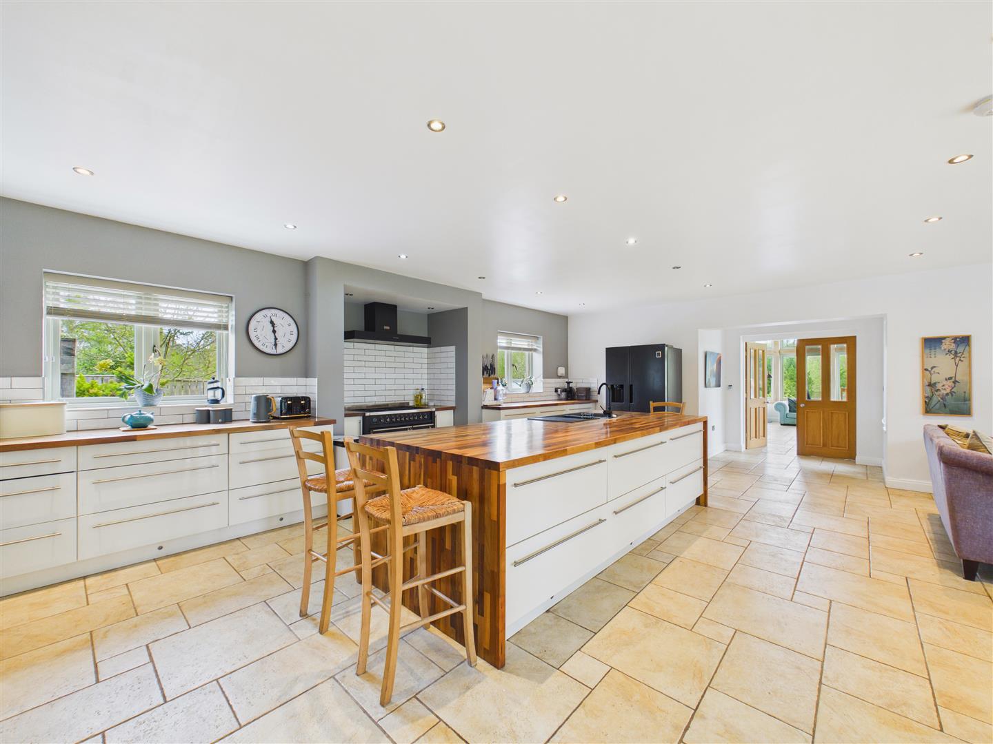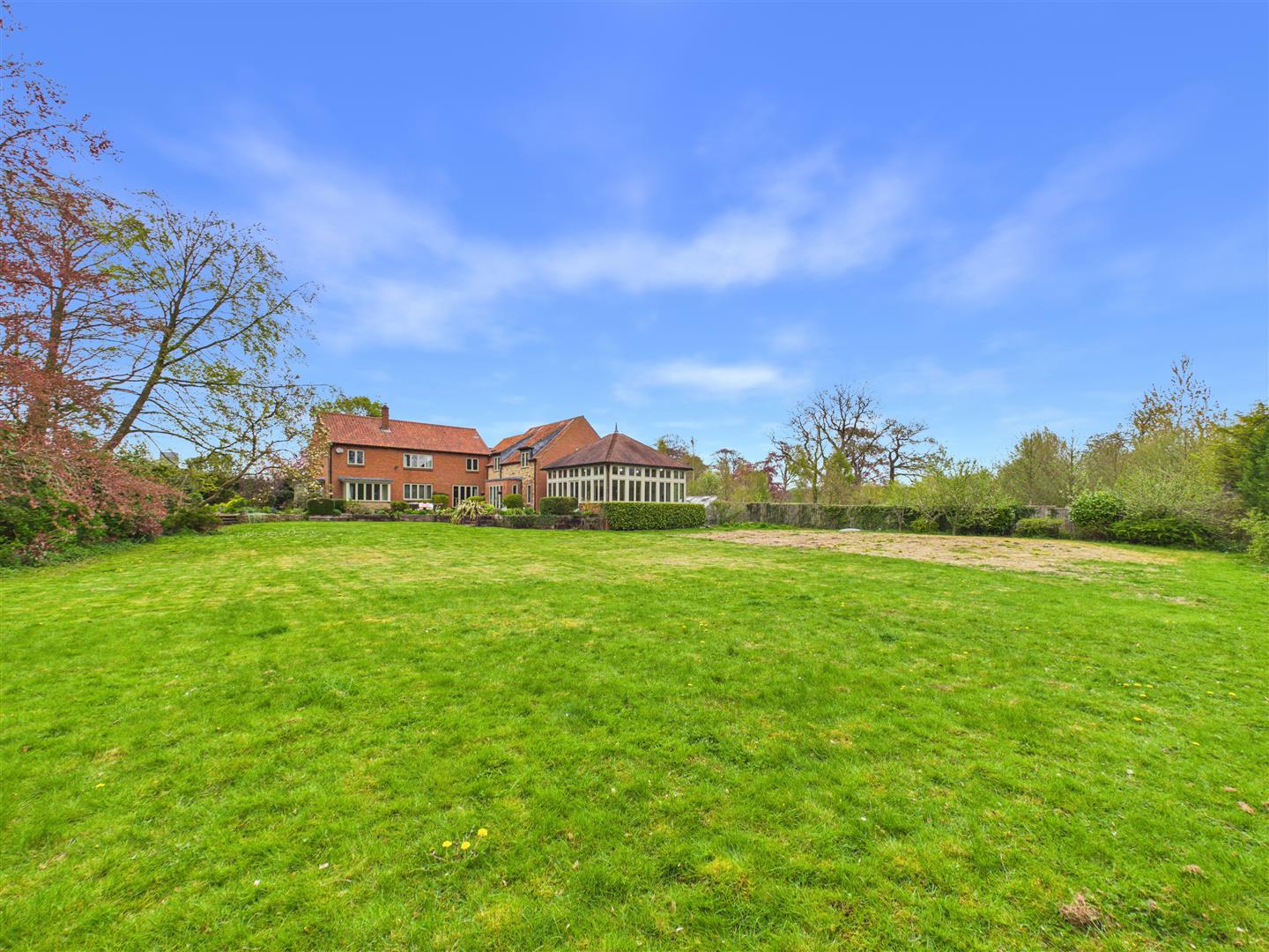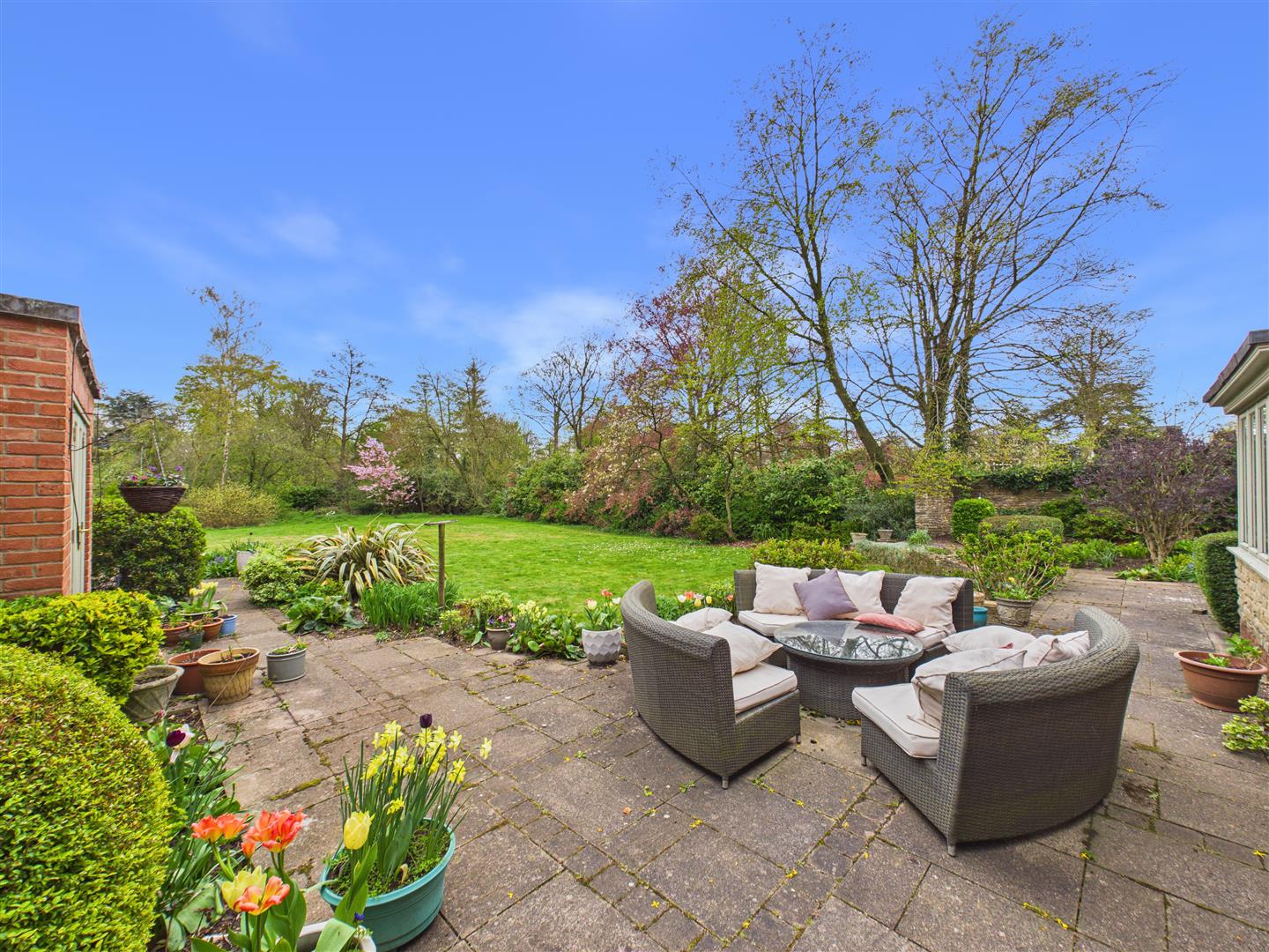 The grounds are thoughtfully equipped with a greenhouse tucked away to the rear and a substantial brick-built store conveniently located to the side of the driveway. At the foot of the garden, the formal lawns transition into a secluded wooded area bordering a natural wetland; a tranquil environment that enjoys the ambient sounds of the fast-flowing trout stream situated just beyond the boundary. The property is approached via double electric timber gates, which open to an extensive parking area and an integral double garage, ensuring total privacy and security."