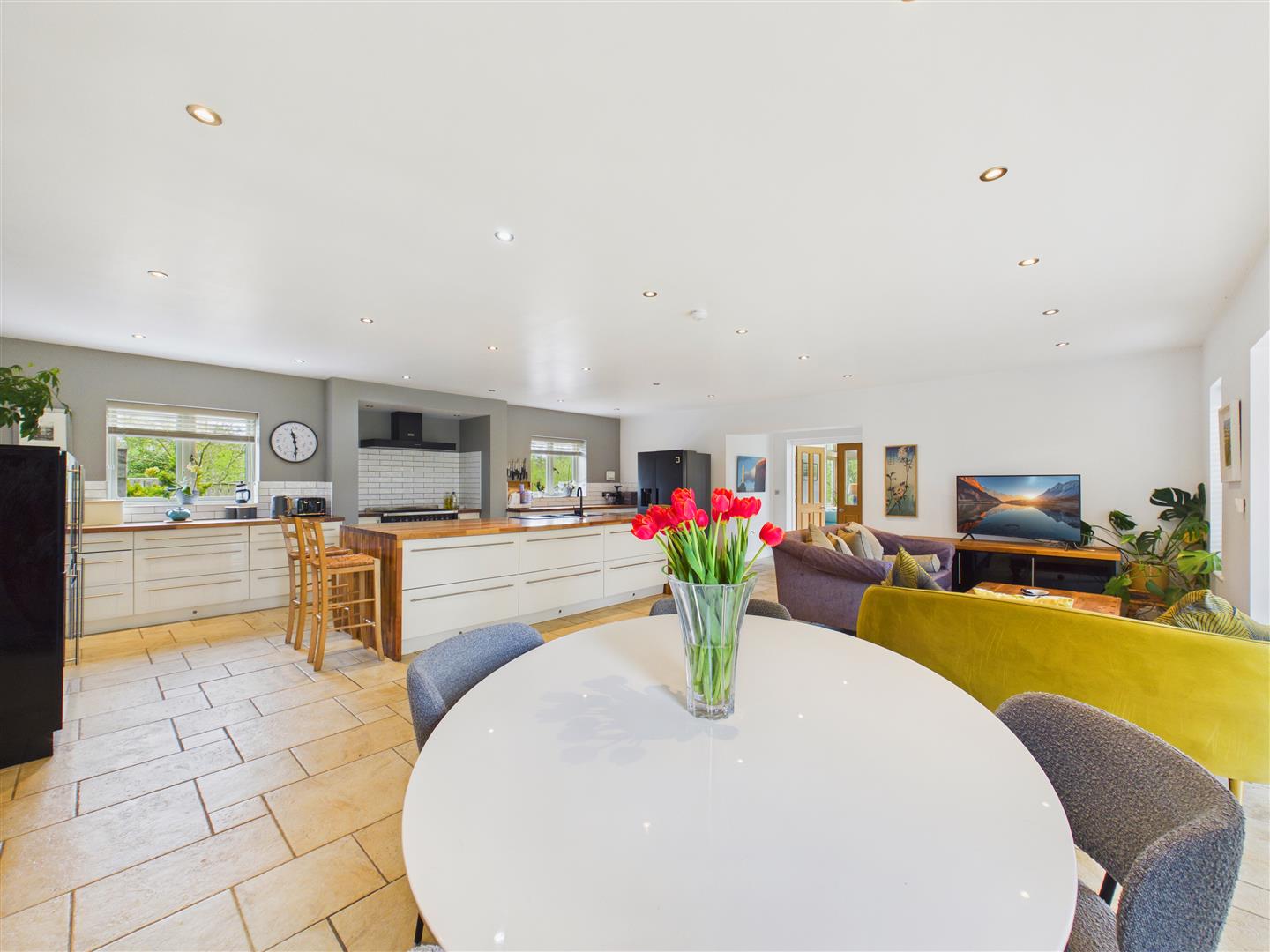 From the two remarkably spacious entrance hallways, the ground floor opens into an extensive series of living areas. Central to the layout is the spectacular green oak garden room/orangerie, which serves as a magnificent family space with views over the landscape and leads directly from a substantial, high-specification living kitchen. This primary living zone is supported by a practical utility room and a further three reception rooms, including a large formal lounge, a separate sitting room, and a versatile study/playroom.