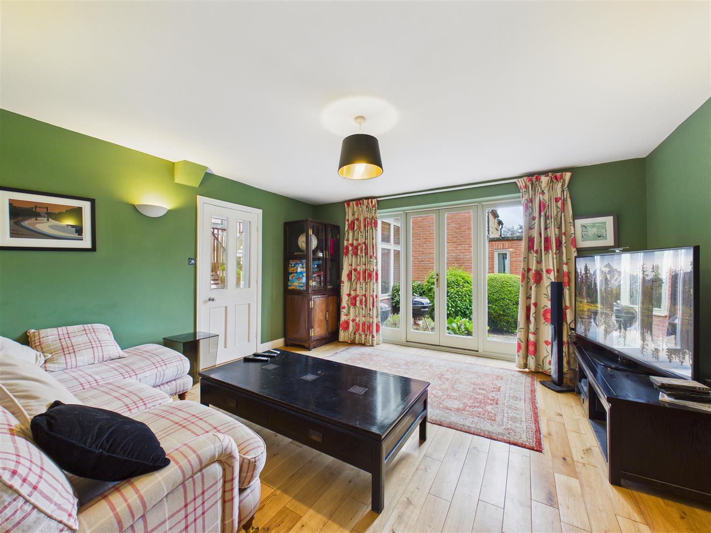 With inset log burning stove, oak flooring, bay window the rear elevation and bay with French doors to the west facing walled garden.