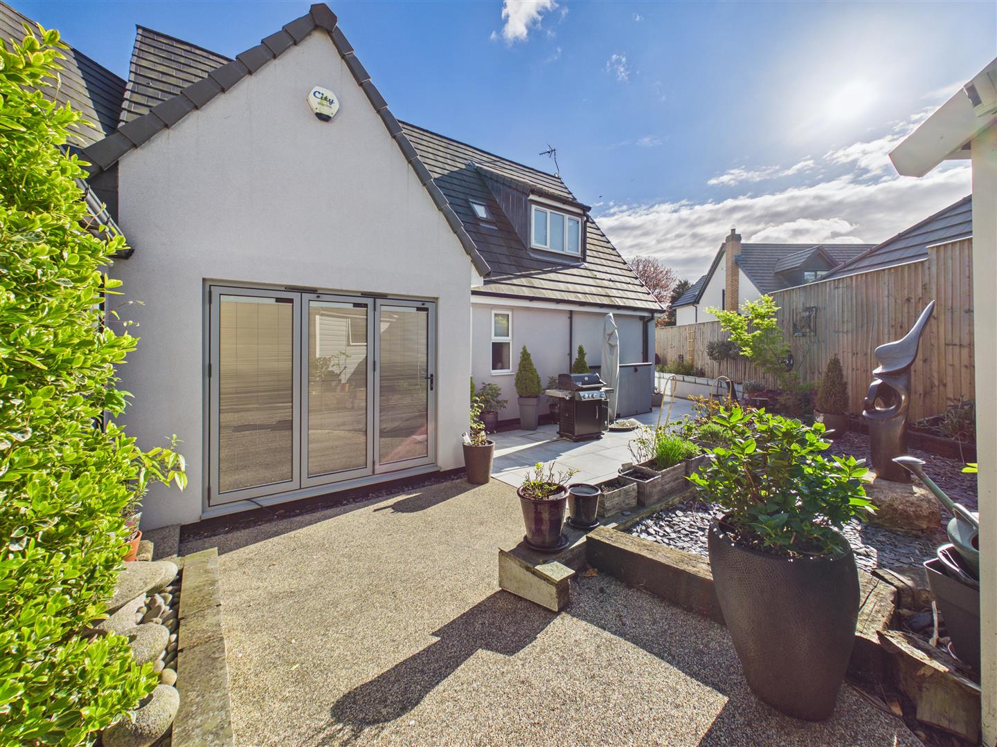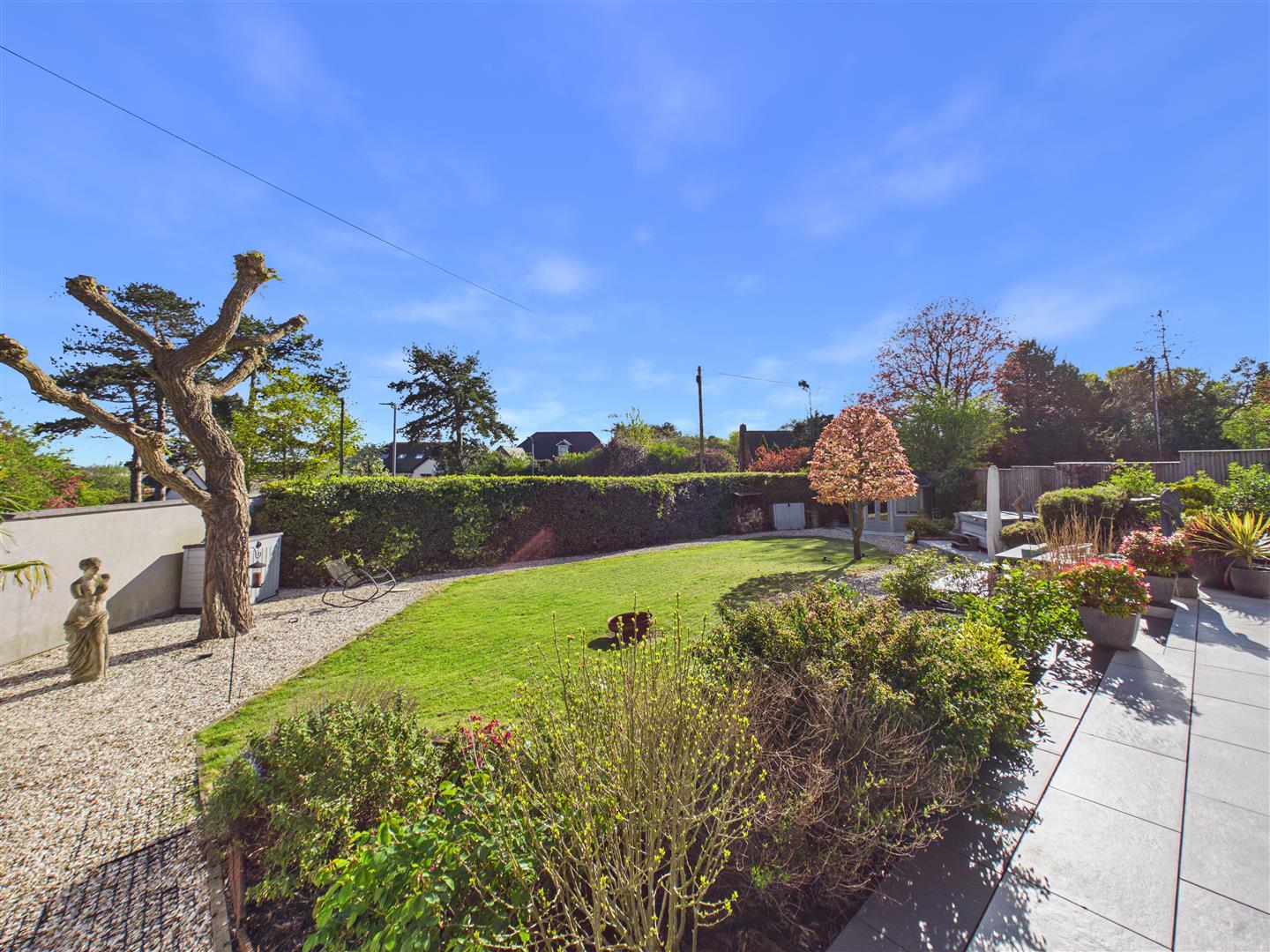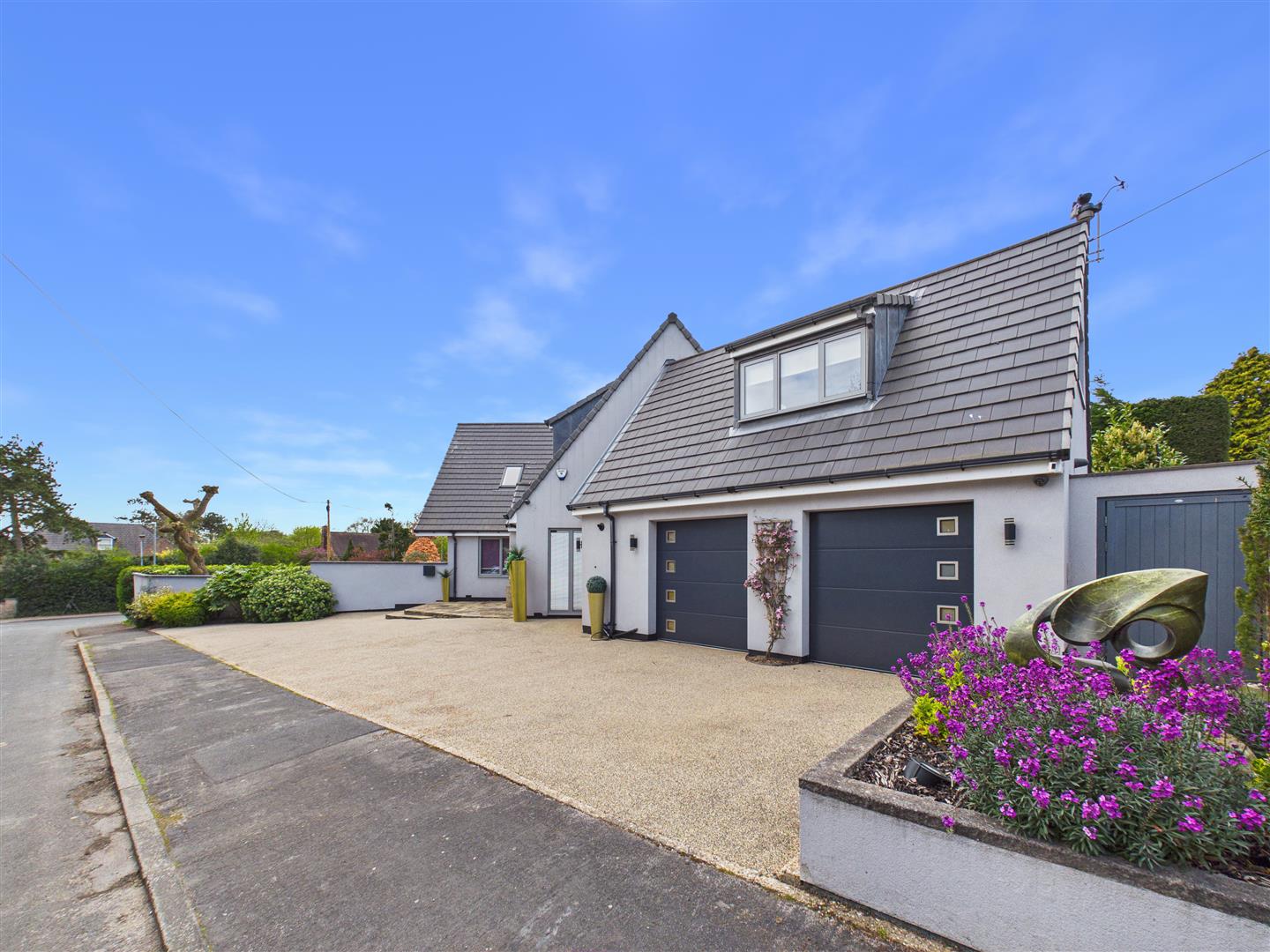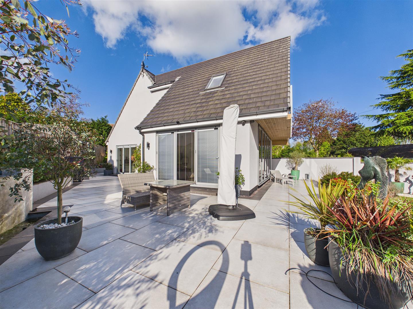 Occupying a superb plot of approximately 0.23 acres, the property is approached via a high-quality resin driveway leading to the garage with an automated door. The rear garden enjoys a favoured southerly aspect, featuring a spacious patio area that transitions seamlessly from the internal living spaces. This entertaining area is bordered by a bespoke filtered stream and cascading waterfall, creating a tranquil backdrop for alfresco dining. Beyond the water feature, steps descend to a landscaped lawn, with the entire outdoor space further enhanced by a smart automated irrigation system and comprehensive smart exterior lighting.