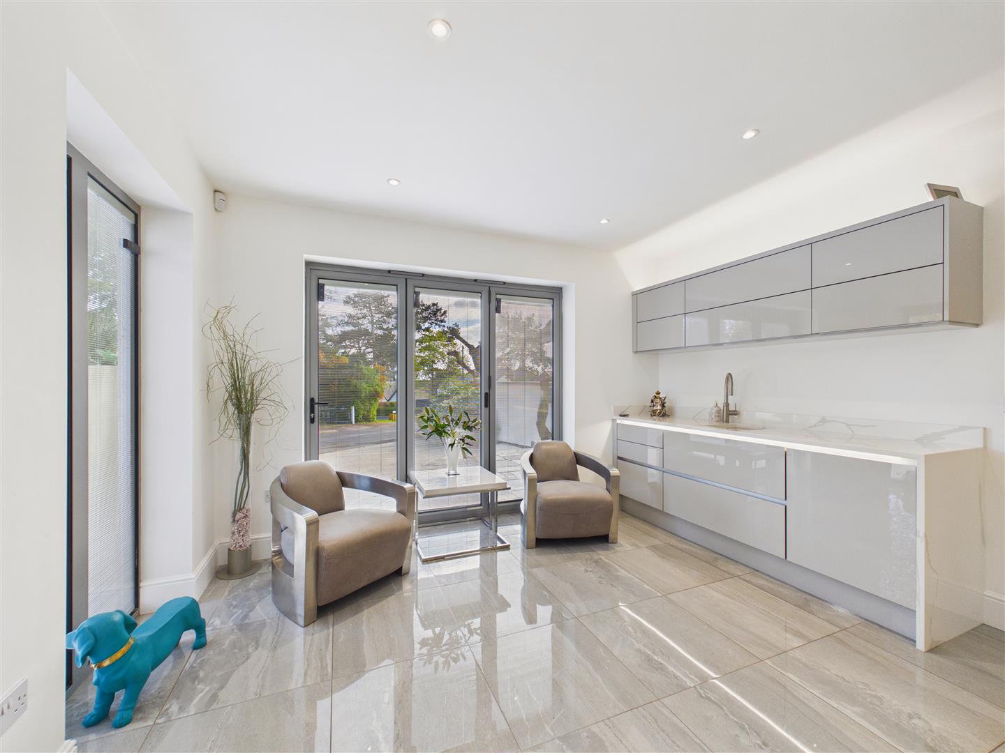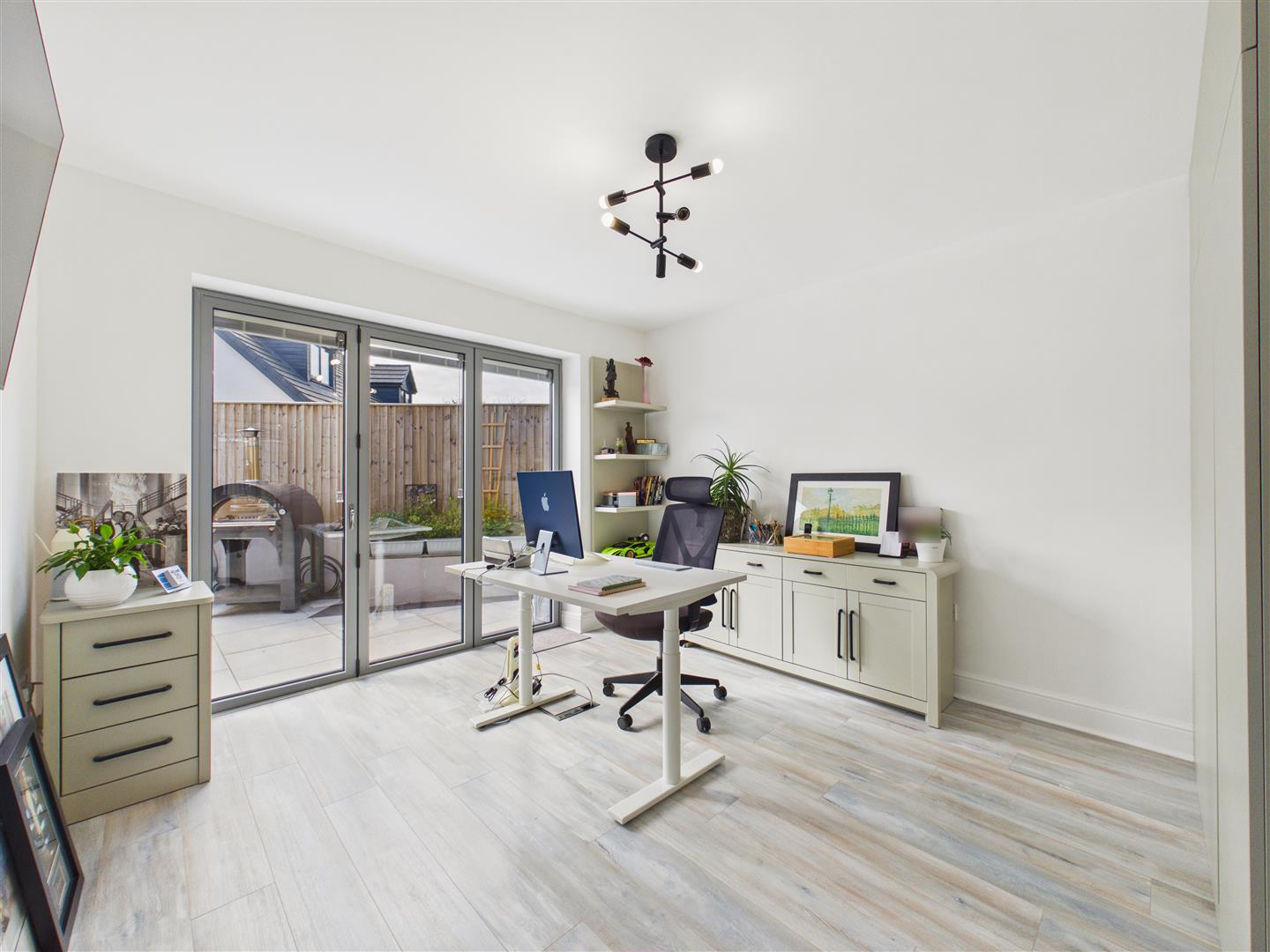 Stunning space with floor to ceiling windows to one wall and bi-folding doors fitted with remote controlled blinds that lead out to the patio.