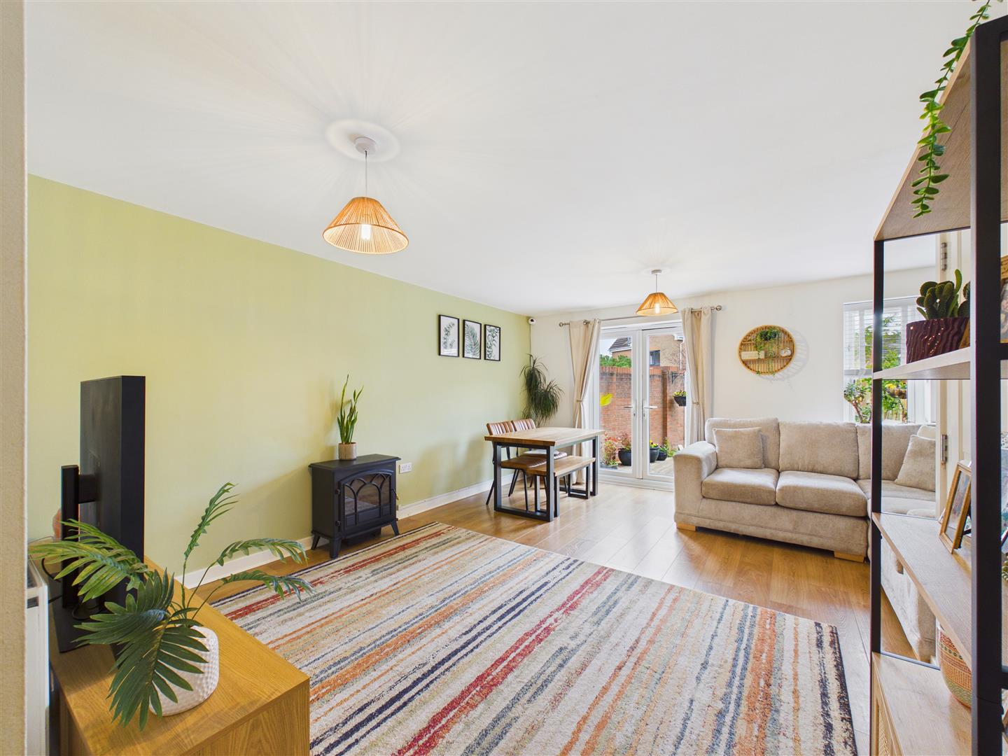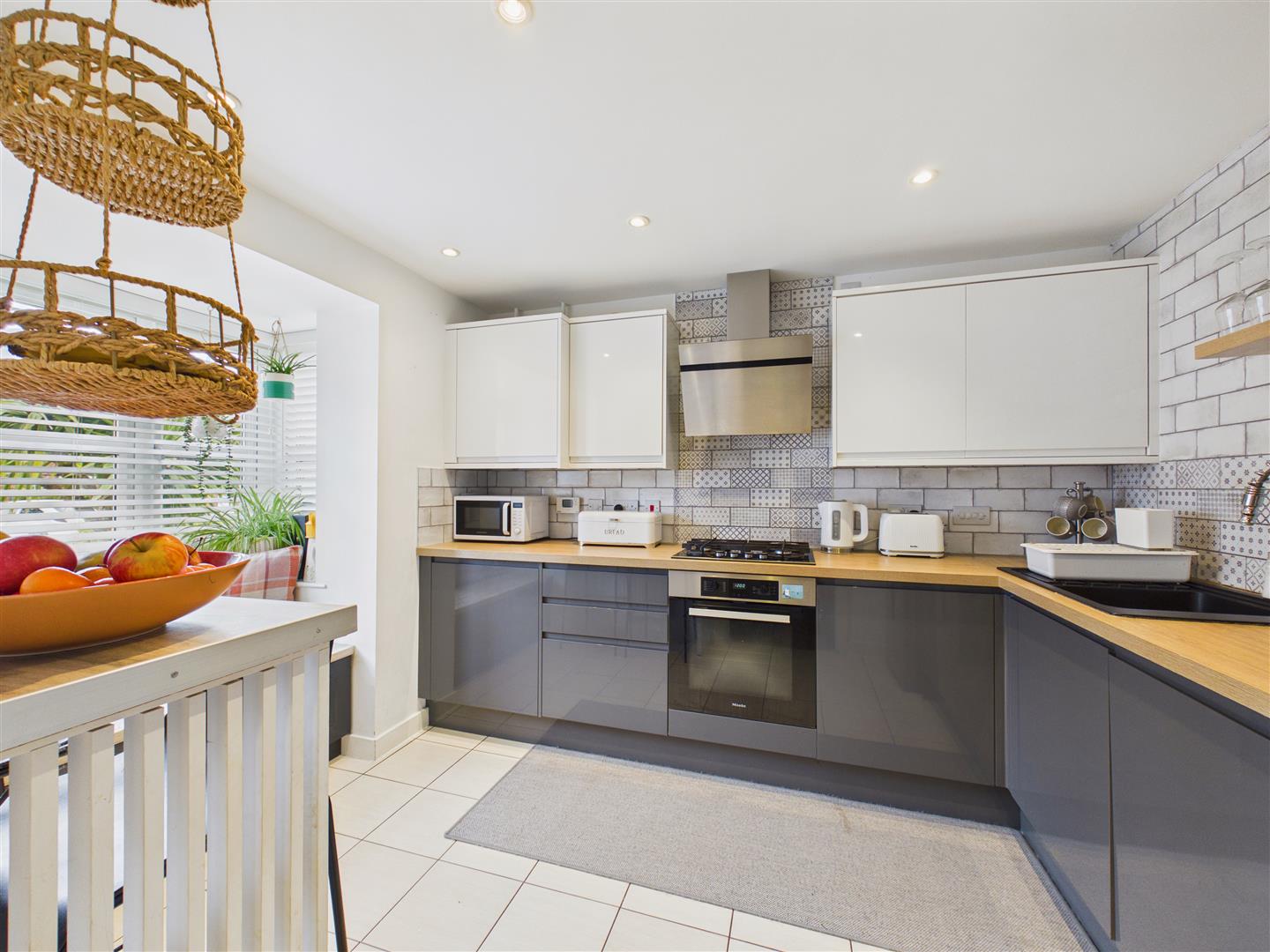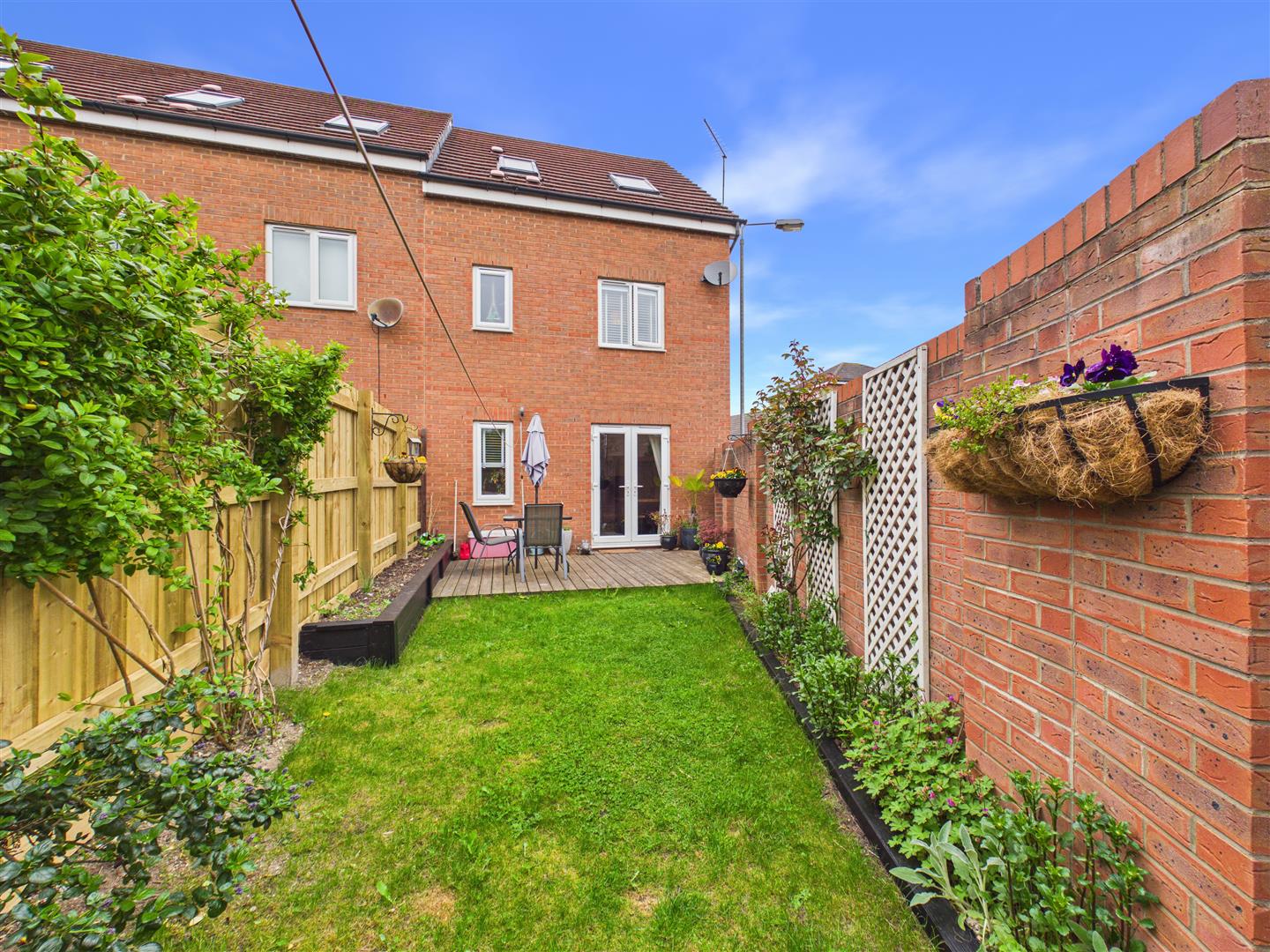 This well-presented three-storey townhouse offers modern family accommodation with the benefit of gardens and a garage. The ground floor comprises an entrance hallway, a cloakroom/utility, and a kitchen featuring a built-in window seat within the bay. To the rear is a spacious lounge/diner with access to the garden.