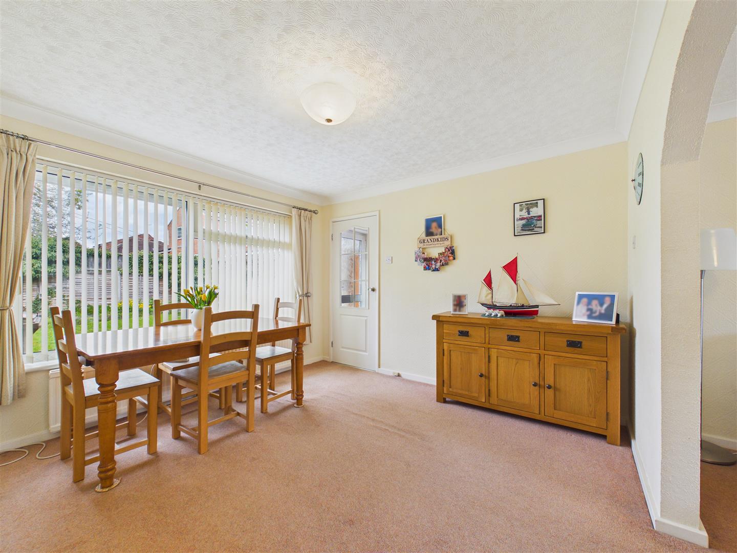 With window to front and electric fireplace to centre. An arch leads through to the dining room.
