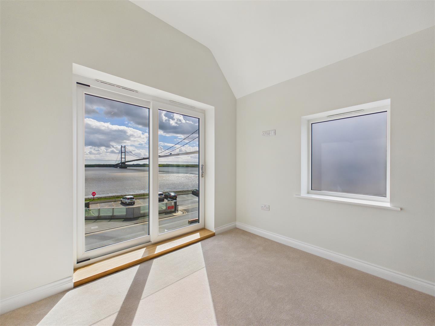 A superb room with a part vaulted ceiling and double opening doors with retaining glass balcony providing an amazing view of the Humber Estuary and Lincolnshire Wolds beyond.