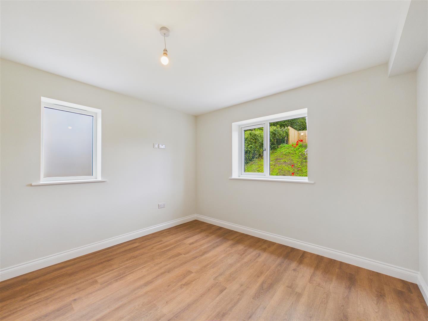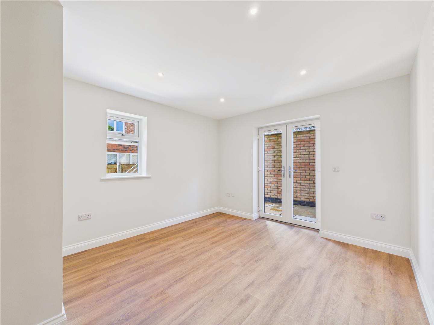 A spacious double bedroom with window overlooking the rear garden and a sliding pocket door to the en-suite shower room.