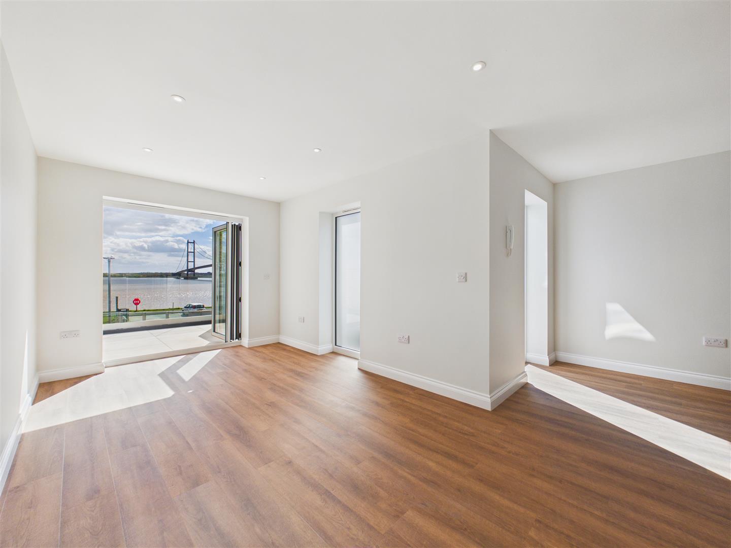 A spectacular space enjoying amazing views of the Humber Estuary and iconic Humber Bridge. This room has plenty of space for a dining suite and settee's etc. with bi fold doors opening out to a paved balcony looking southward with glazed surround. The kitchen features a beautiful range of contemporary units with quartz worksurfaces and an island peninsular with breakfast bar overhang. The kitchen features an induction hob with ceiling mounted extractor above, oven, combination oven/microwave, larder fridge freezer and a dishwasher. There is also an undercounter one and a half sink with mixer tap.