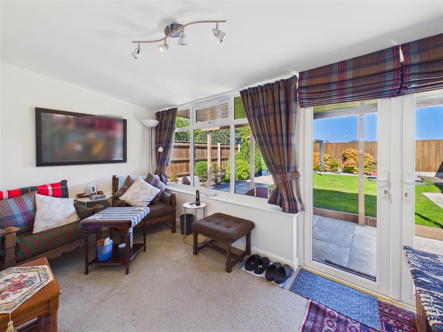 Overlooking the rear garden with large picture windows and double doors leading out to the patio.