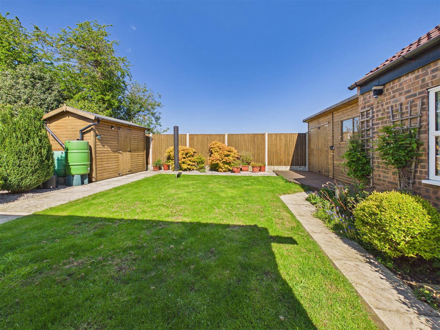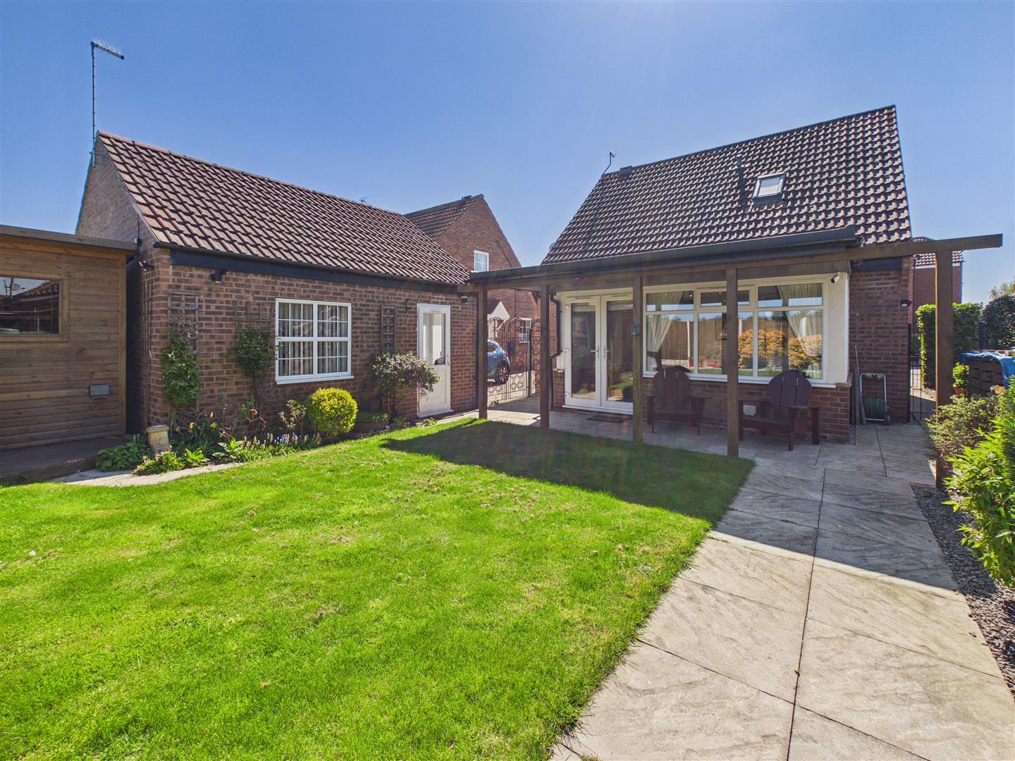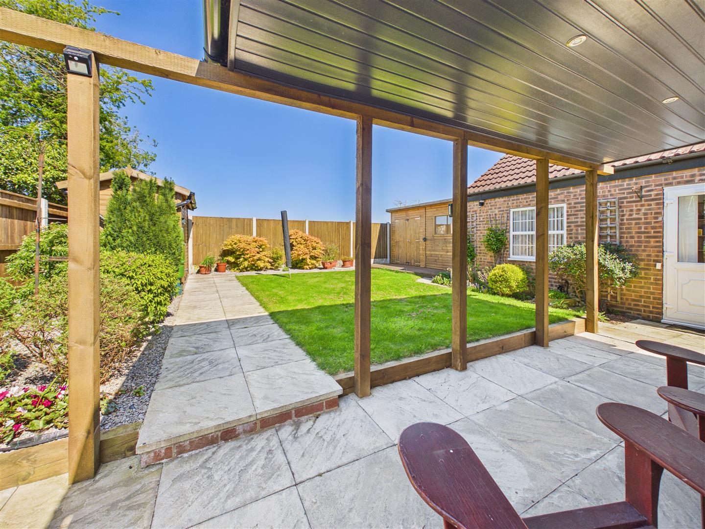 A laurel hedge extends to the front with a path and the surround being block set. The block sets extend along the driveway leading up to the garaging. The rear garden is a particular feature having a paved terraced which is part covered by a gazebo providing shade. A lawn is flanked by a path and there are two very useful large sheds for storage.