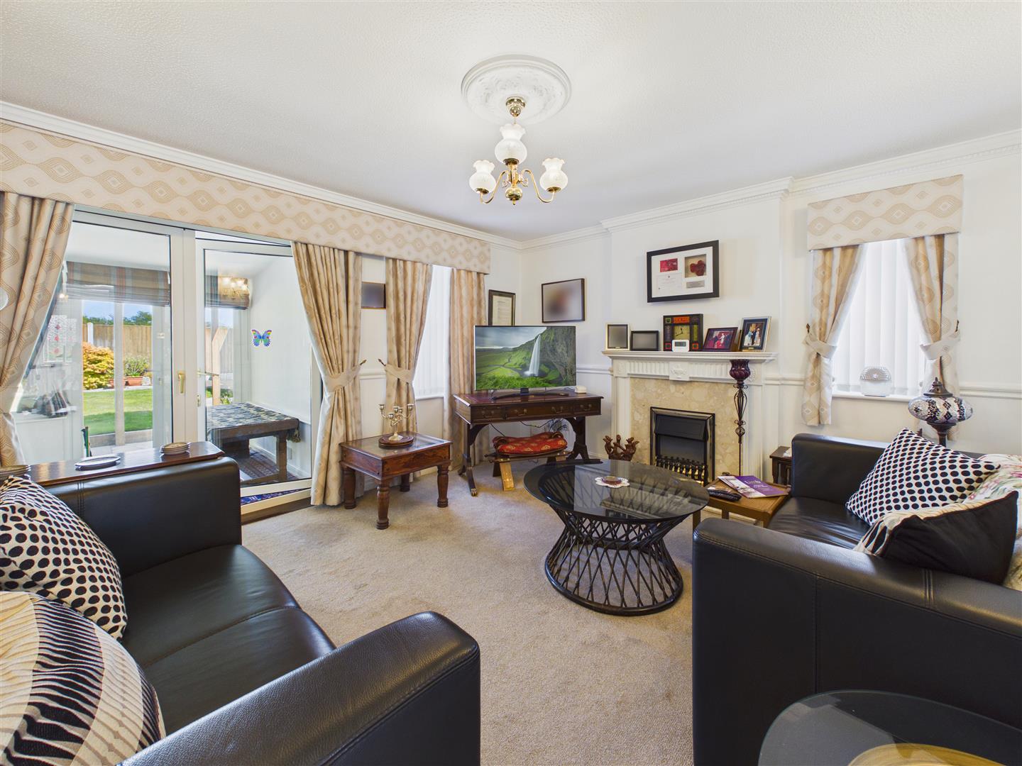 Situated to the rear of the house with windows to rear and side. Feature fire surround with marble hearth and back plate house an electric fire. Wide double doors opening through to the garden room.